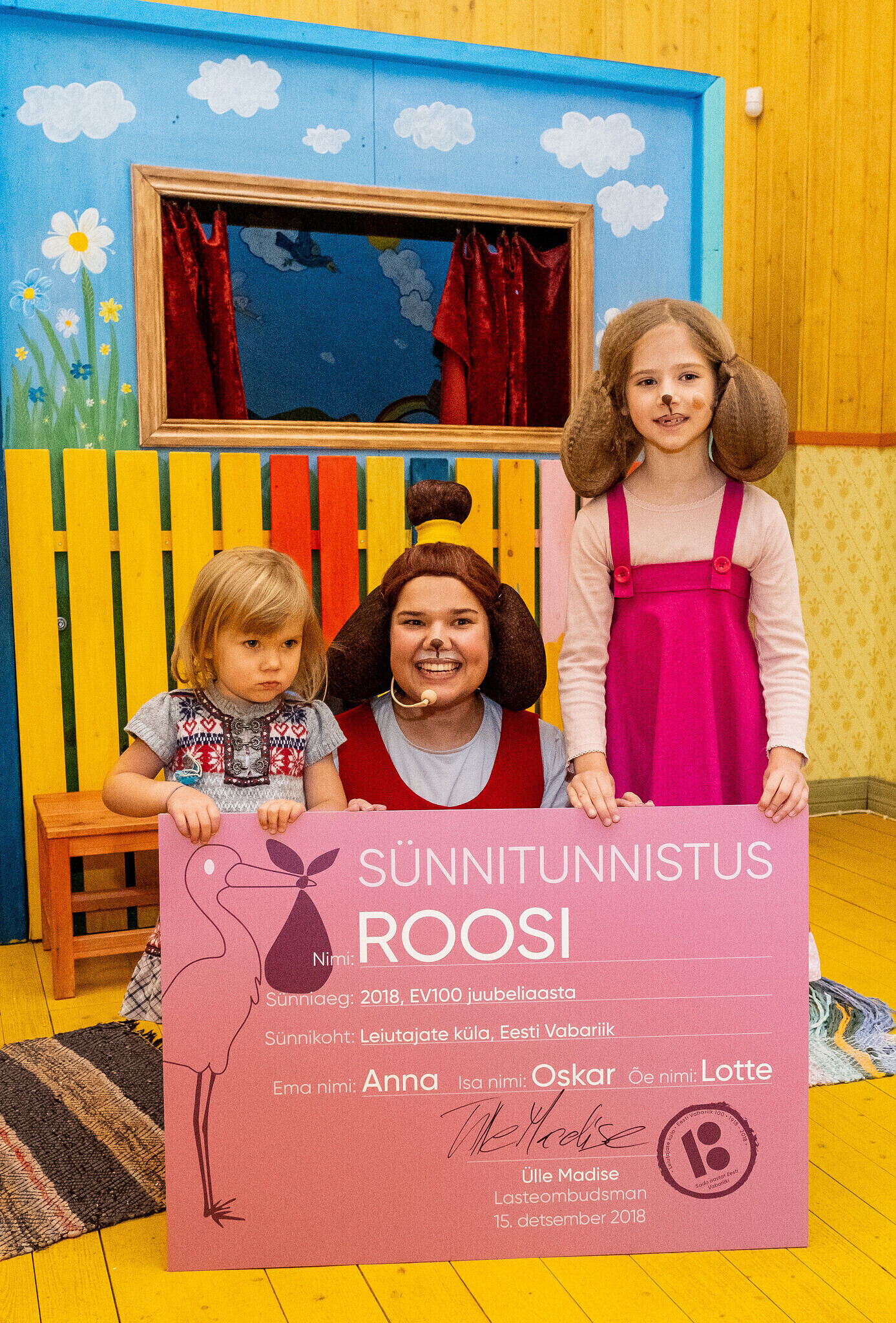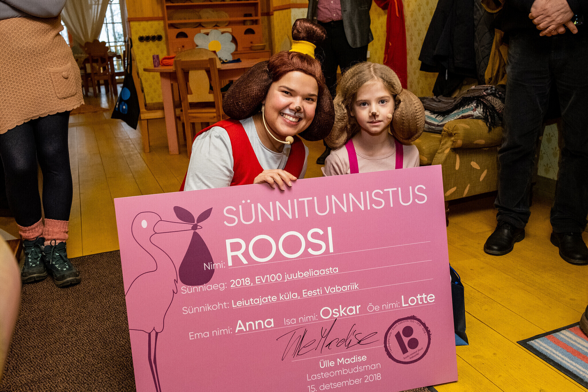 Одним из последних больших подарков для детей станет анимационный фильм "Лотте и пропавшие драконы", который выйдет на экраны в январе 2019 года. Участники мероприятия в Лоттемаа поприветствовали нового жителя Деревни изобретателей – младшую сестренку собачки Лотте Роози. Свидетельство о рождении Роози вручила канцлер права и омбудсмен по правам ребенка Юлле Мадизе.