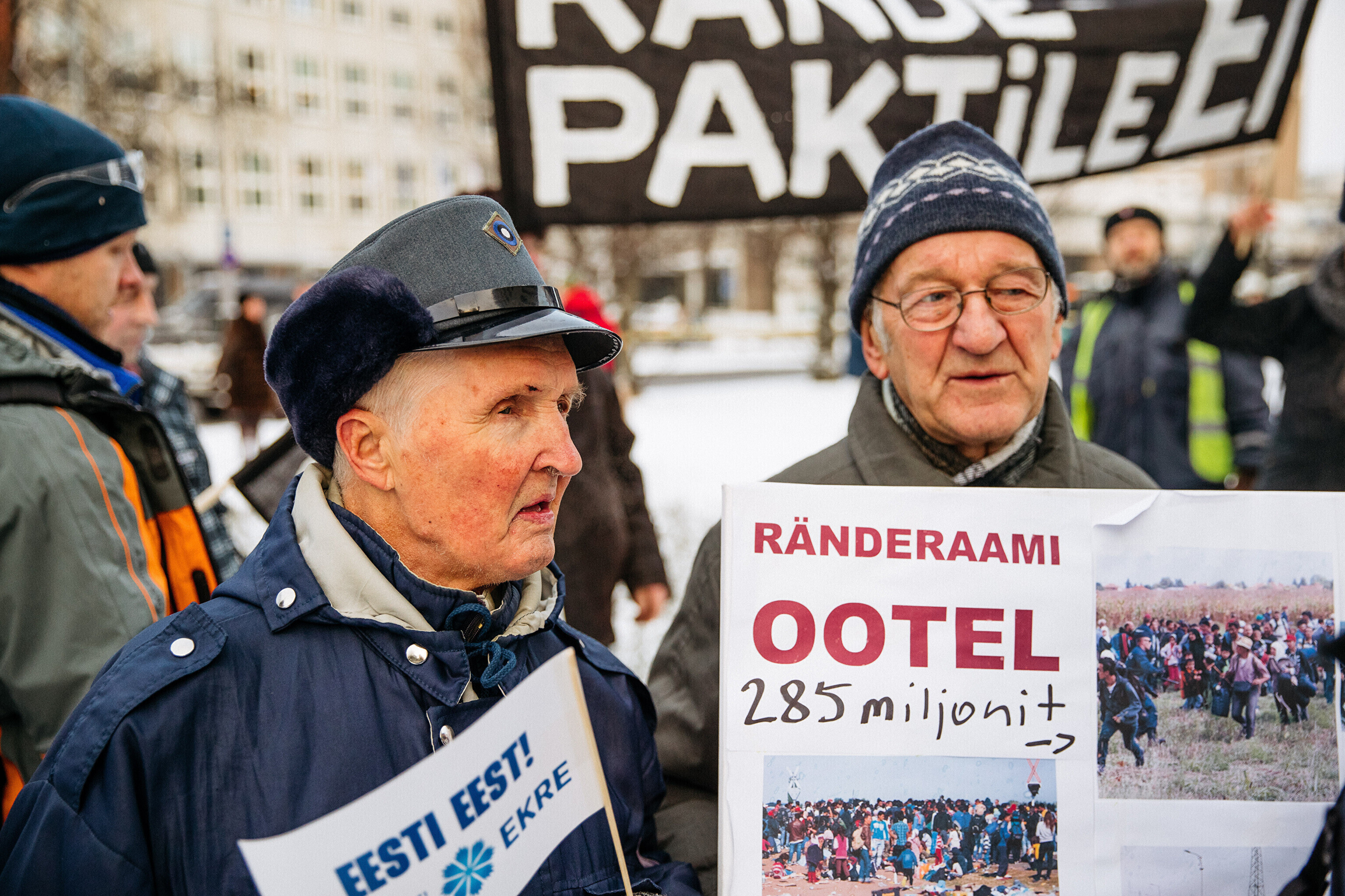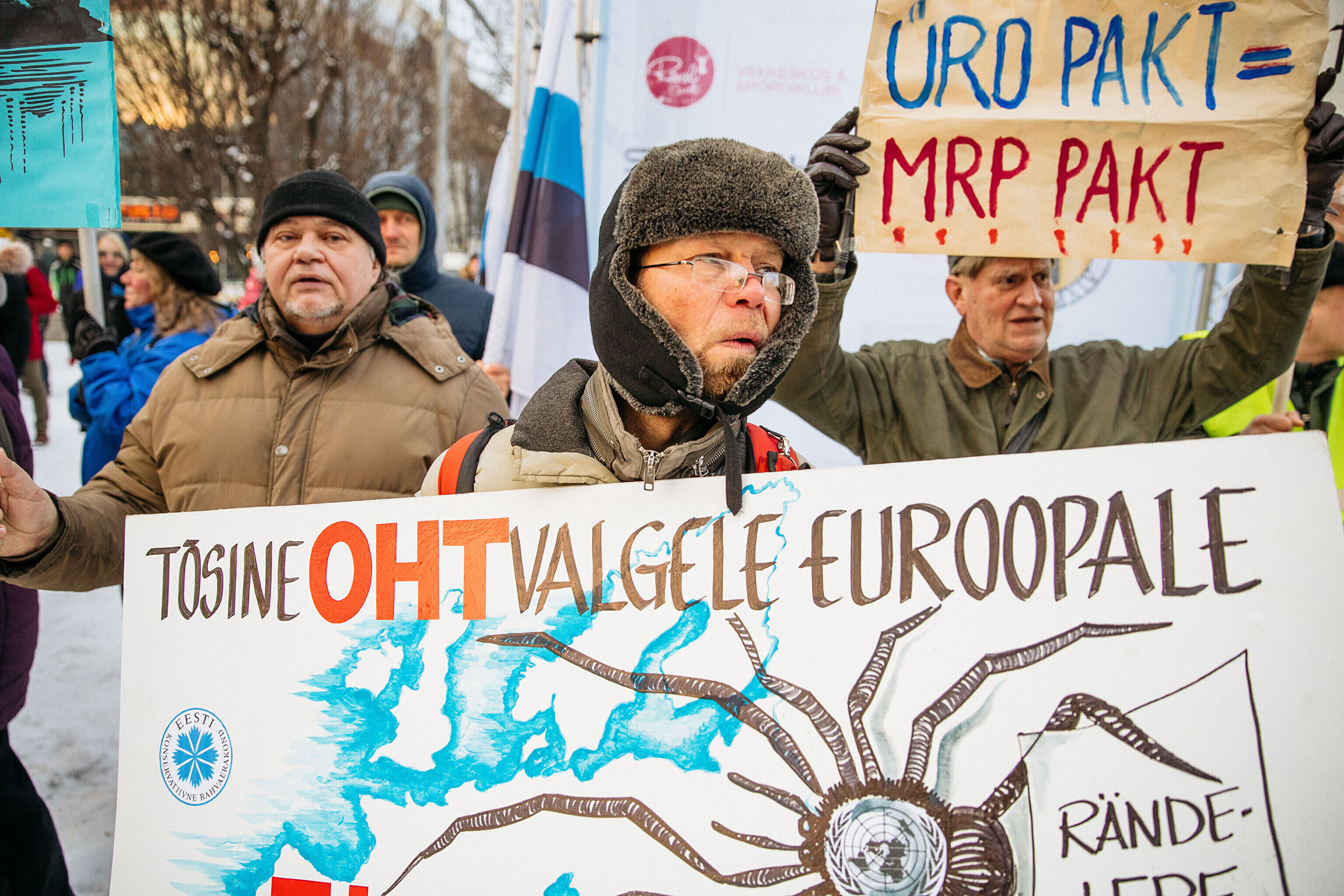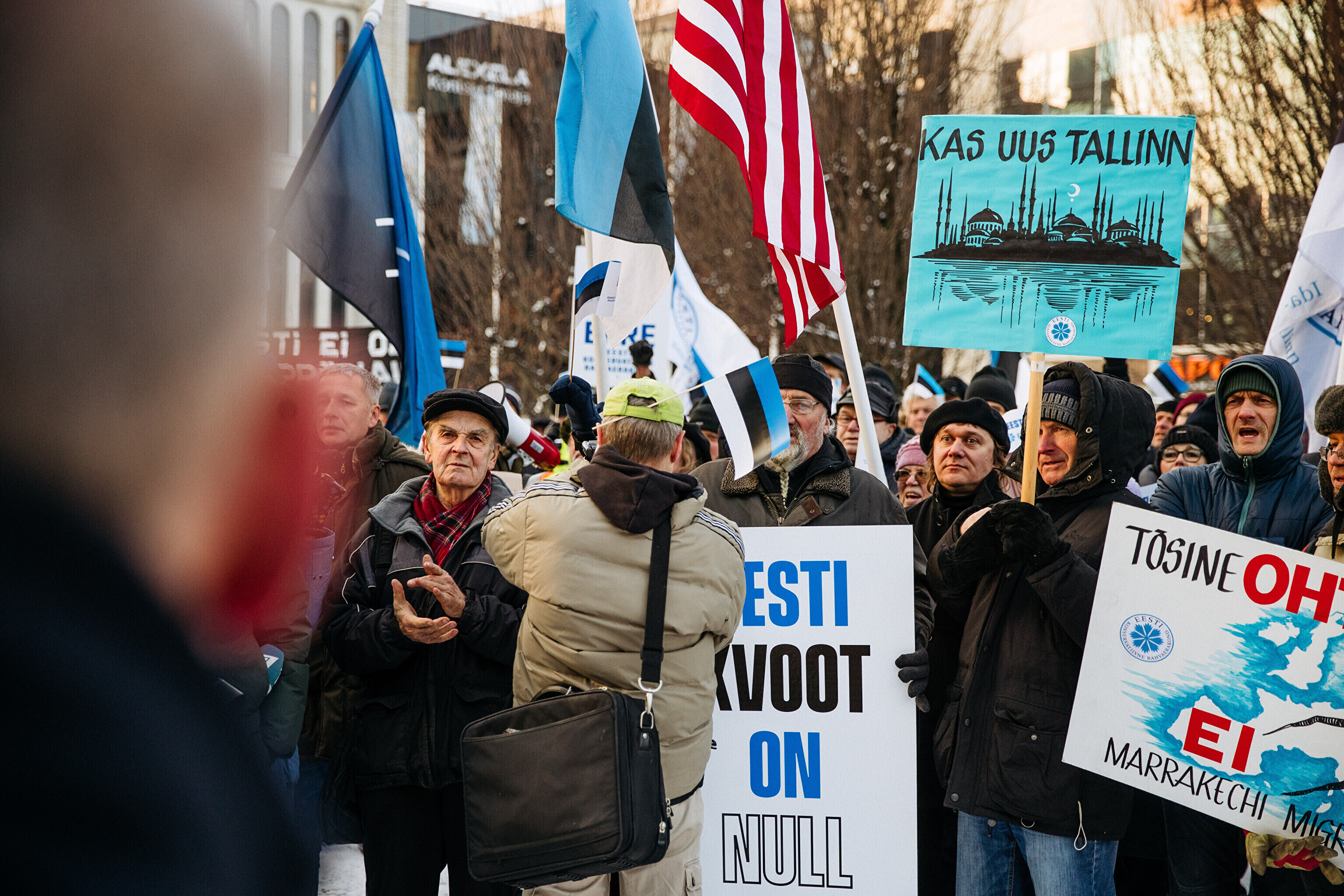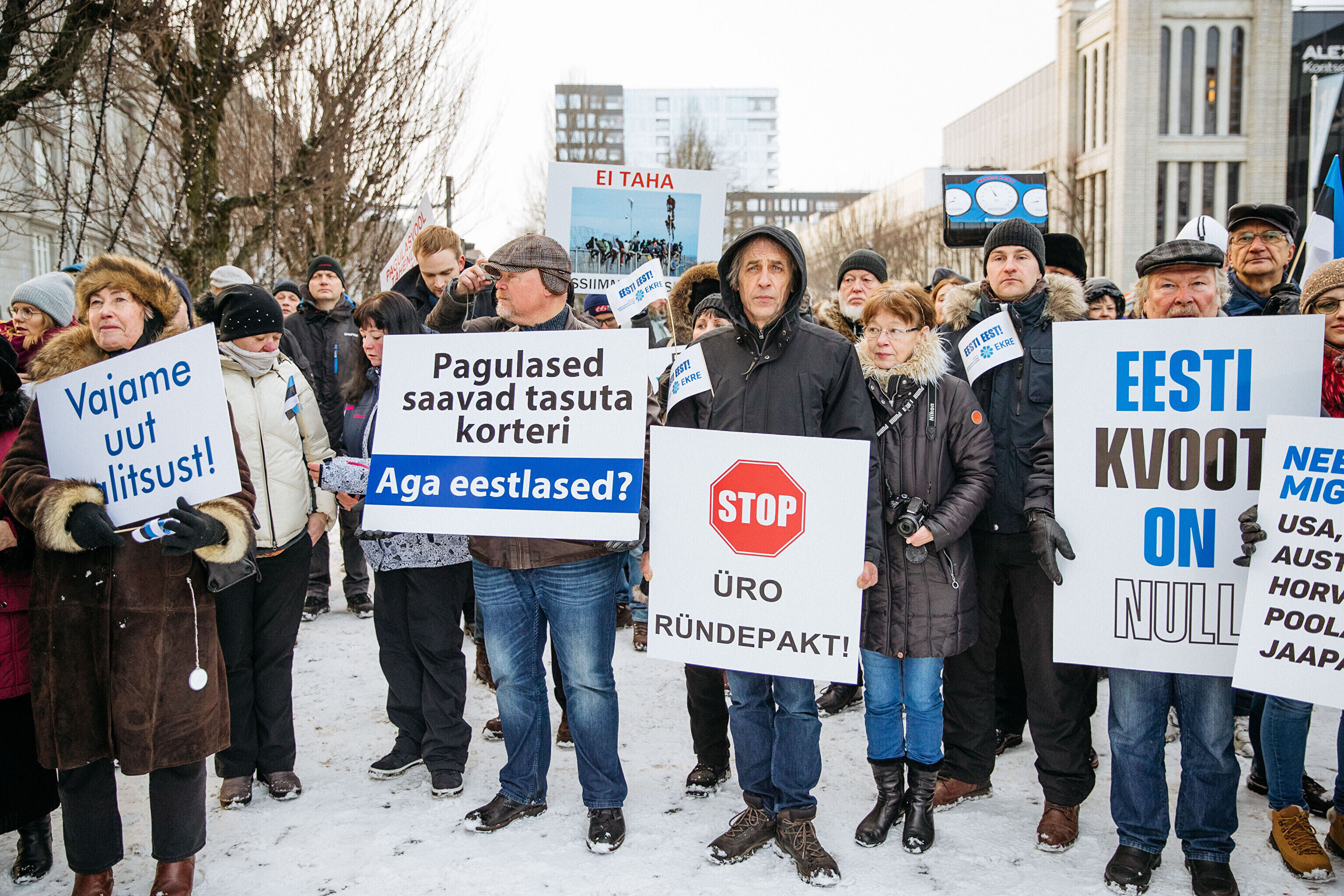 Противники миграционного пакта ООН собрались в первой половине дня перед замком Тоомпеа по приглашению движения "Мудрая и здоровая Эстония" под руководством Марии Кальюсте, а в полдень по приглашению Консервативной народной партии (EKRE) – перед зданием МИД.