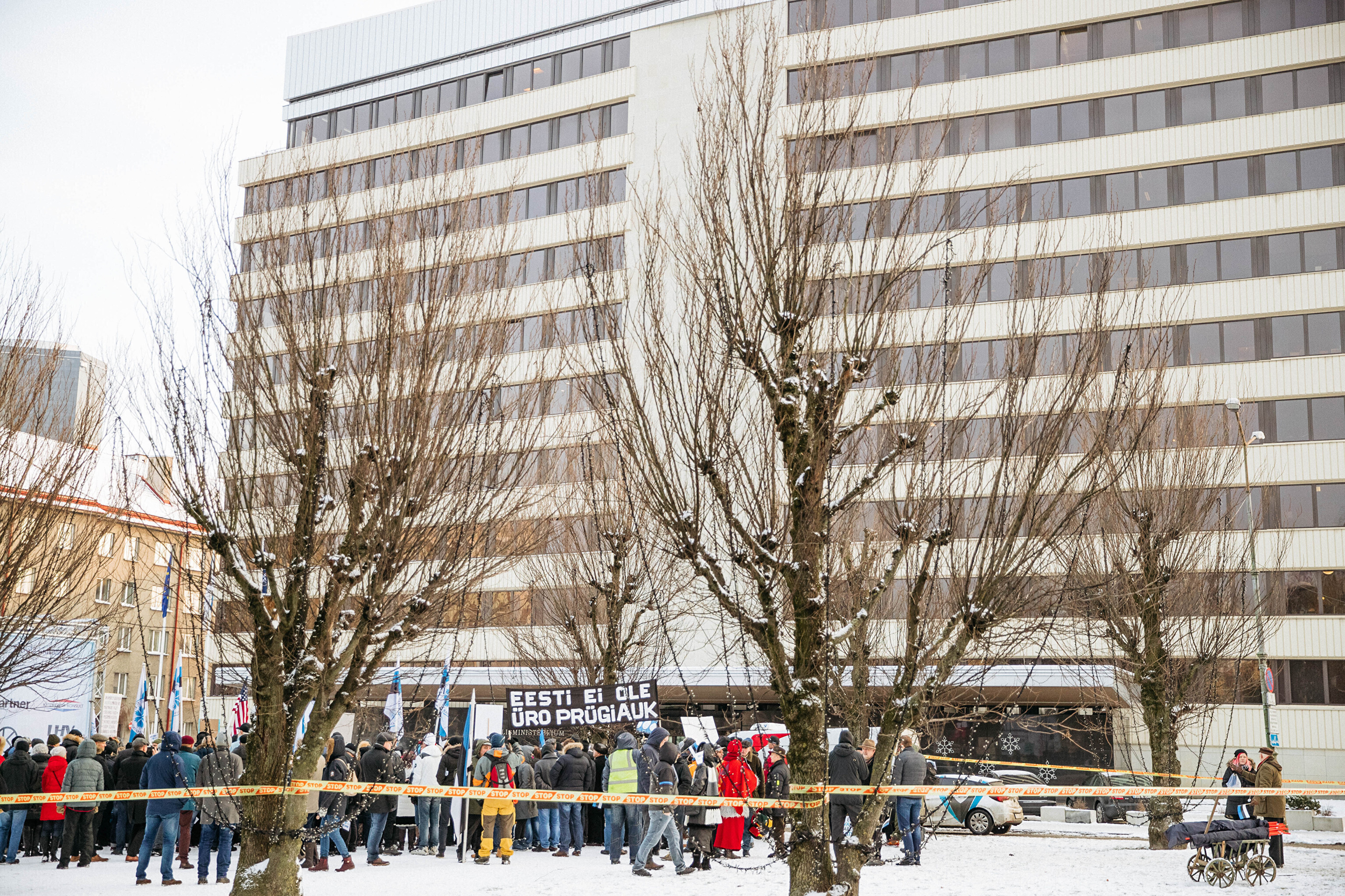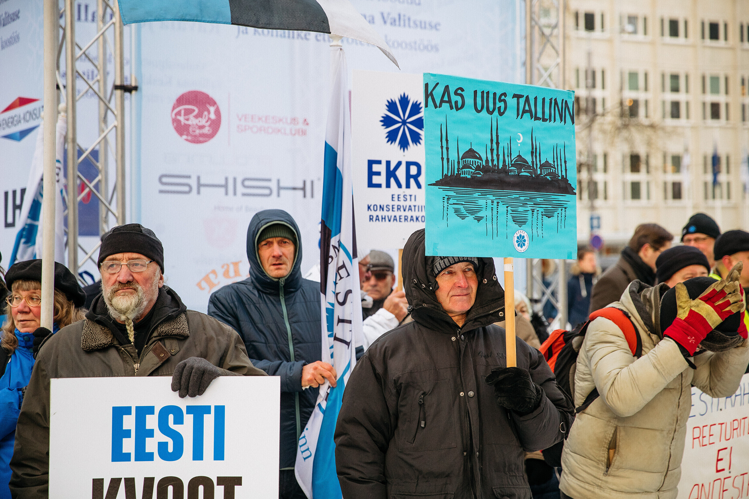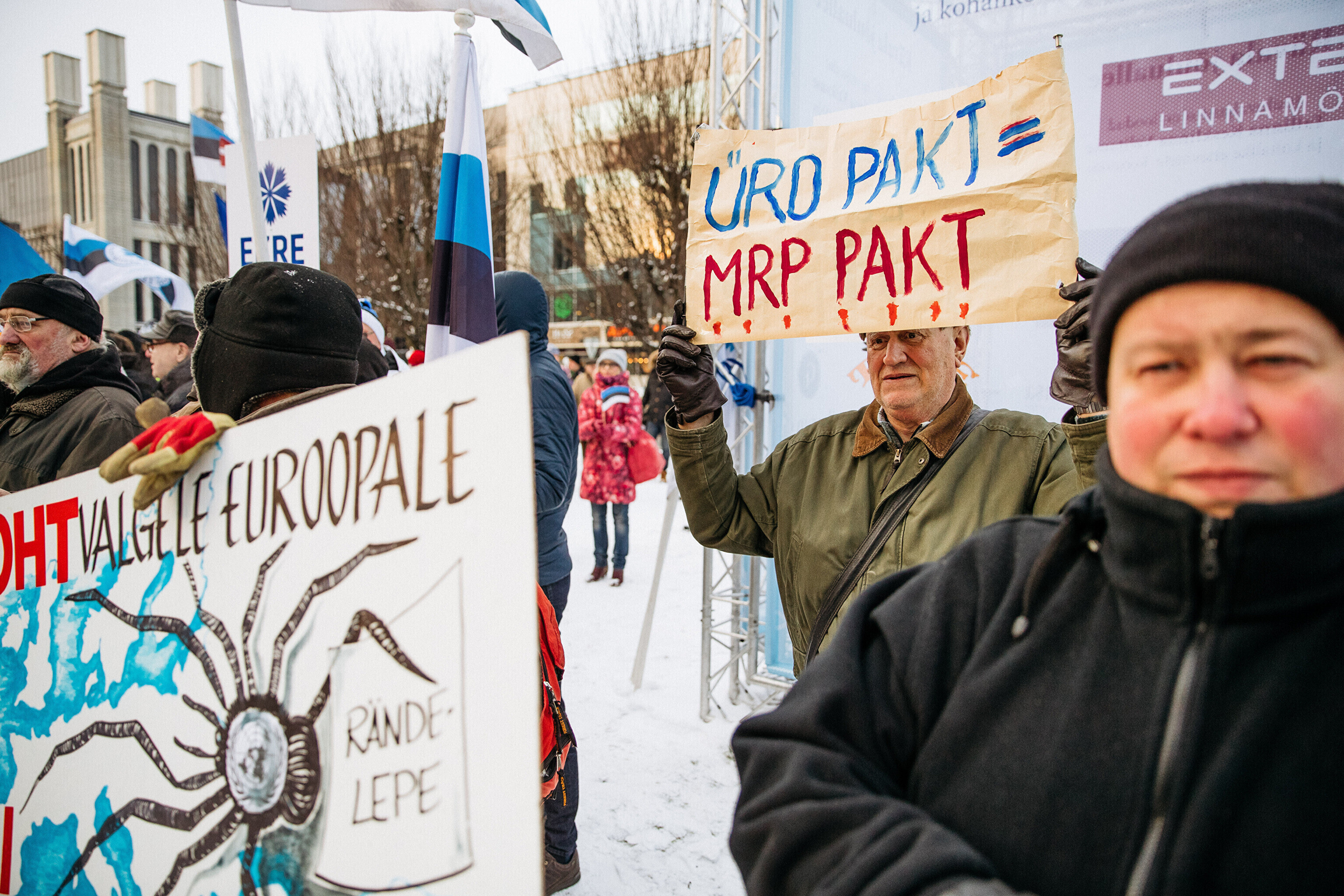 Противники миграционного пакта ООН собрались в первой половине дня перед замком Тоомпеа по приглашению движения "Мудрая и здоровая Эстония" под руководством Марии Кальюсте, а в полдень по приглашению Консервативной народной партии (EKRE) – перед зданием МИД.