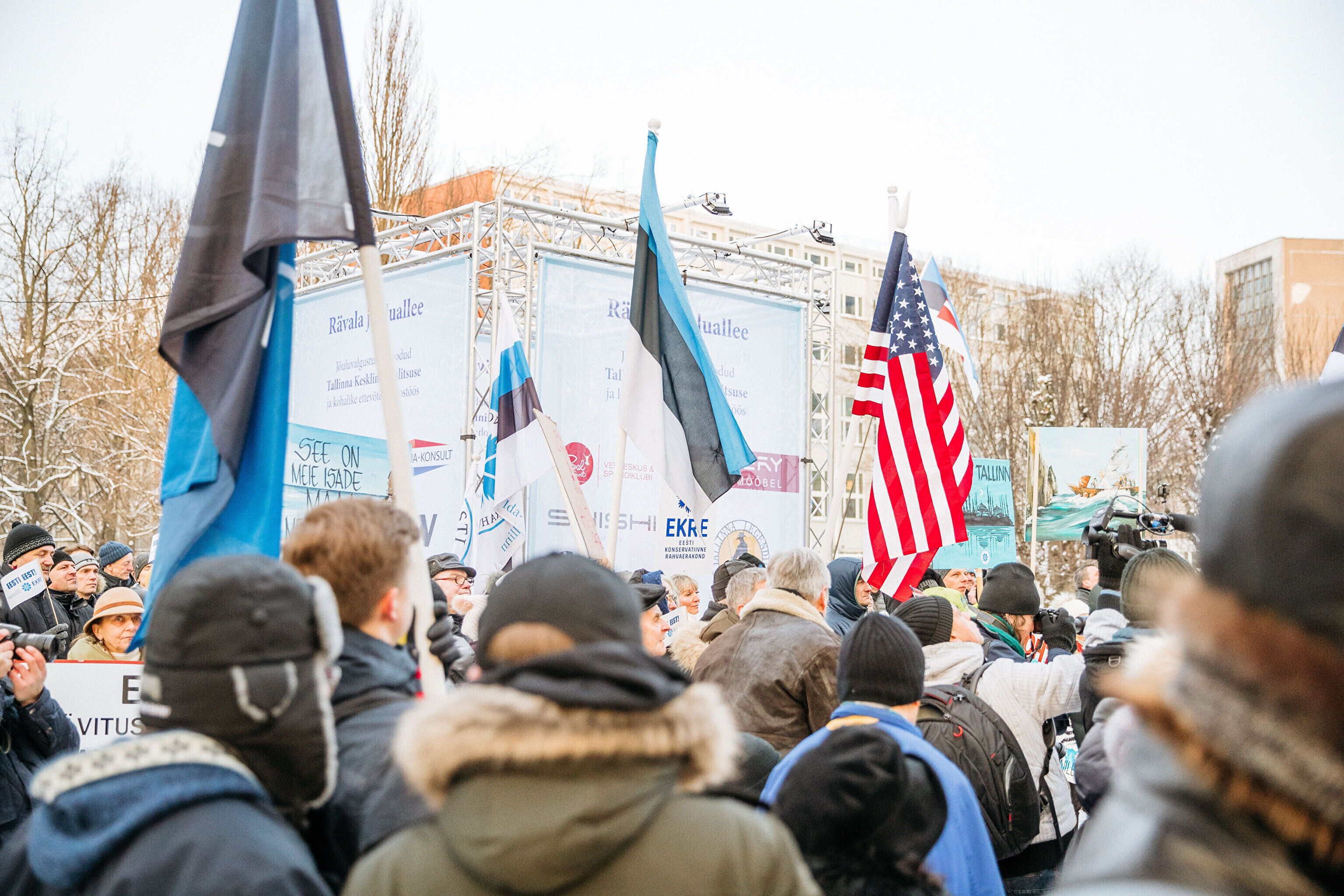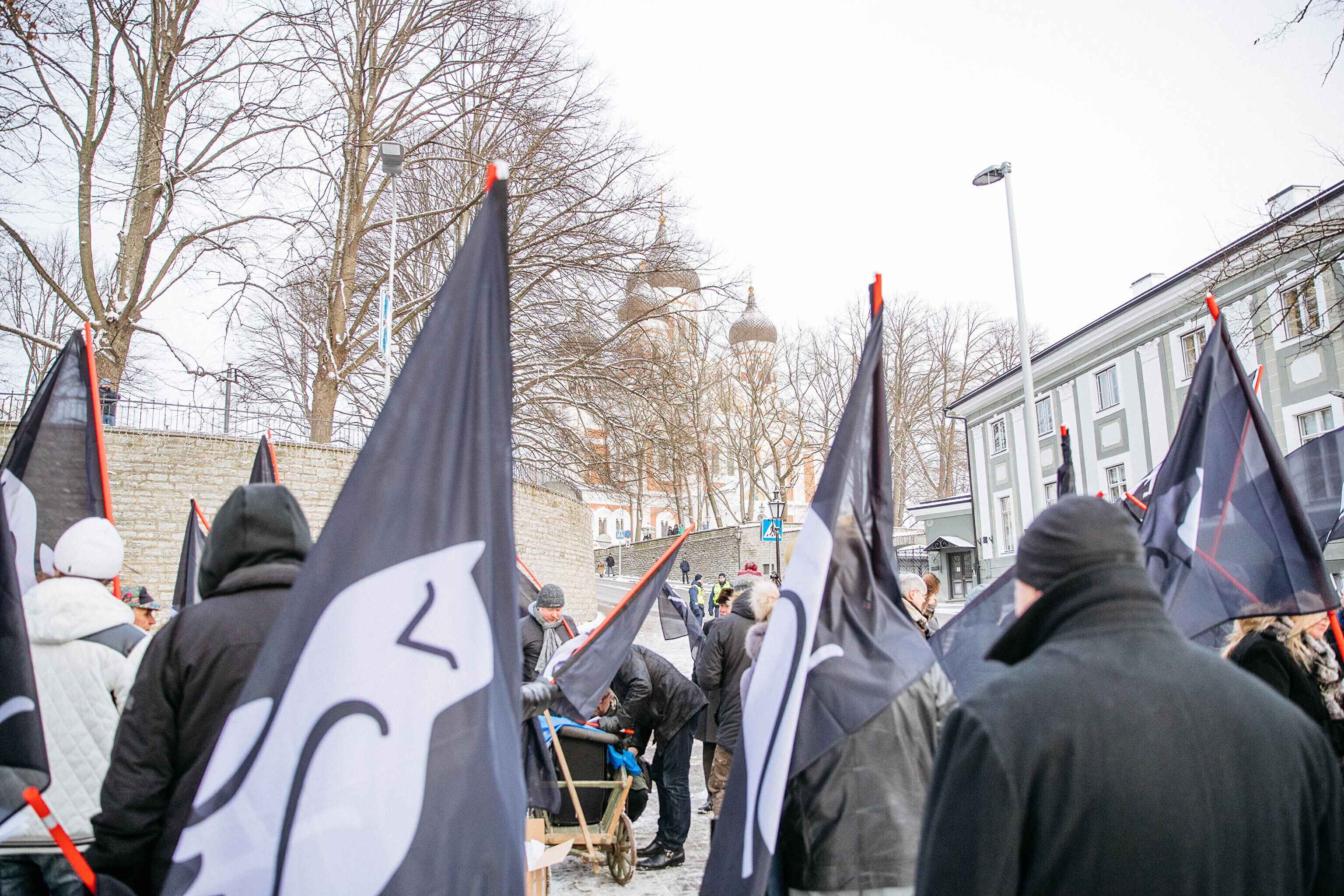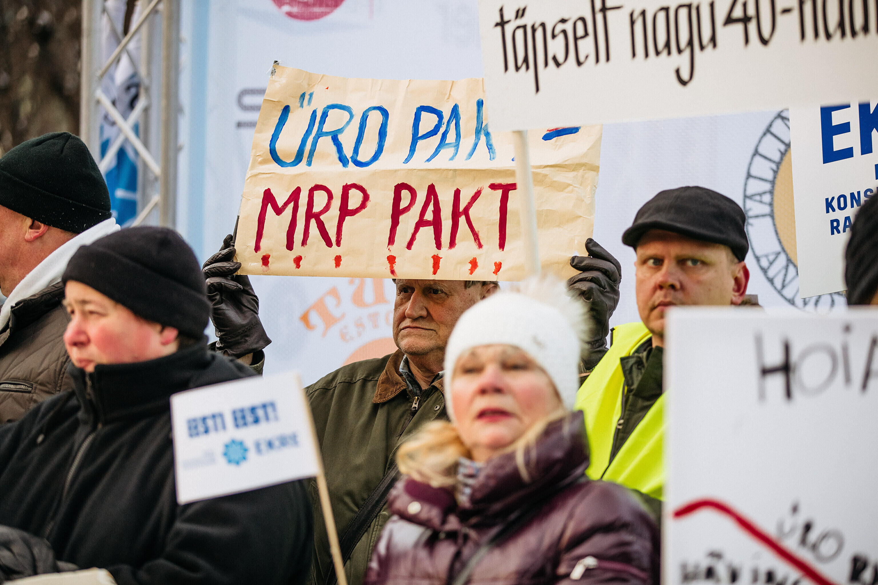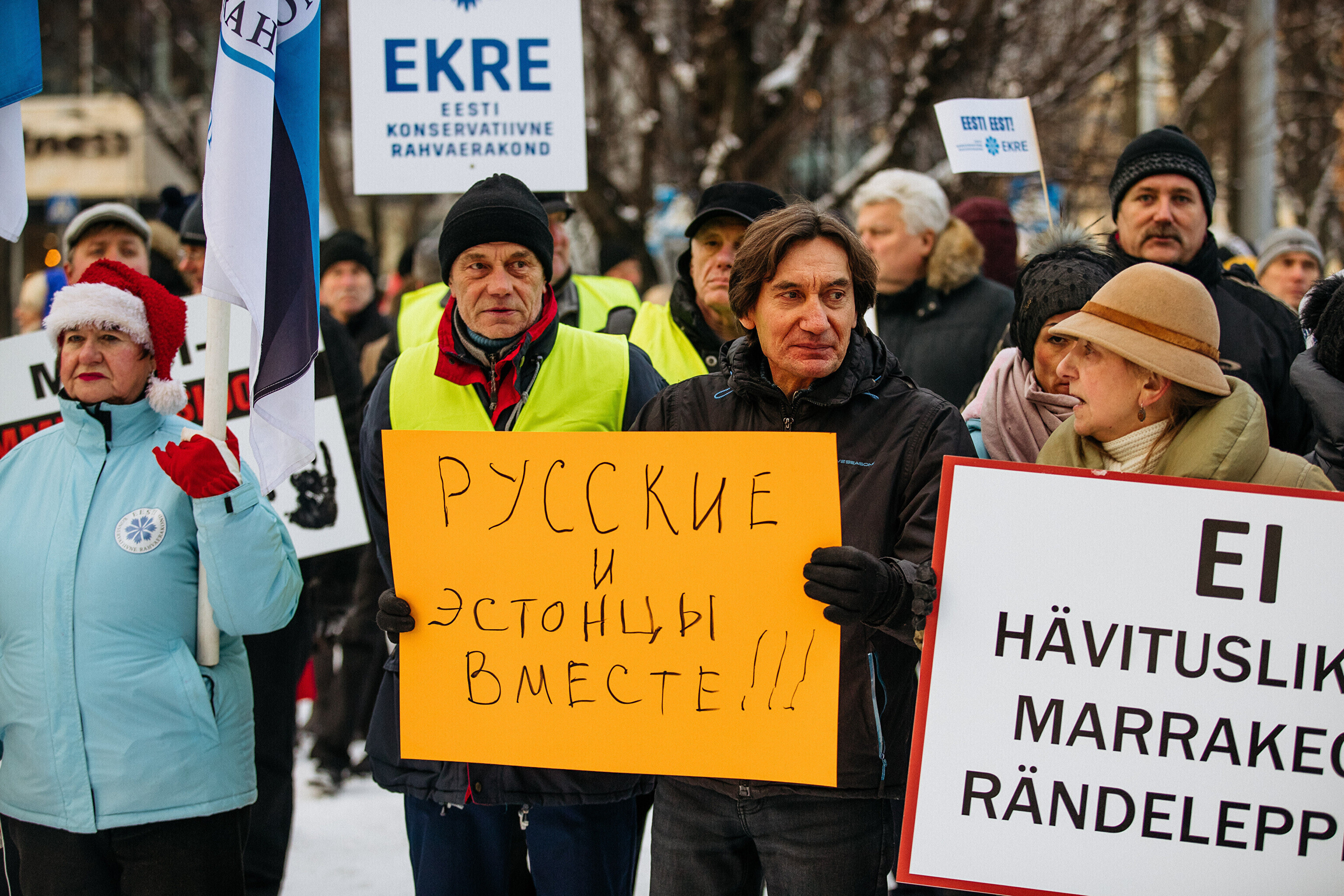 Противники миграционного пакта ООН собрались в первой половине дня перед замком Тоомпеа по приглашению движения "Мудрая и здоровая Эстония" под руководством Марии Кальюсте, а в полдень по приглашению Консервативной народной партии (EKRE) – перед зданием МИД.