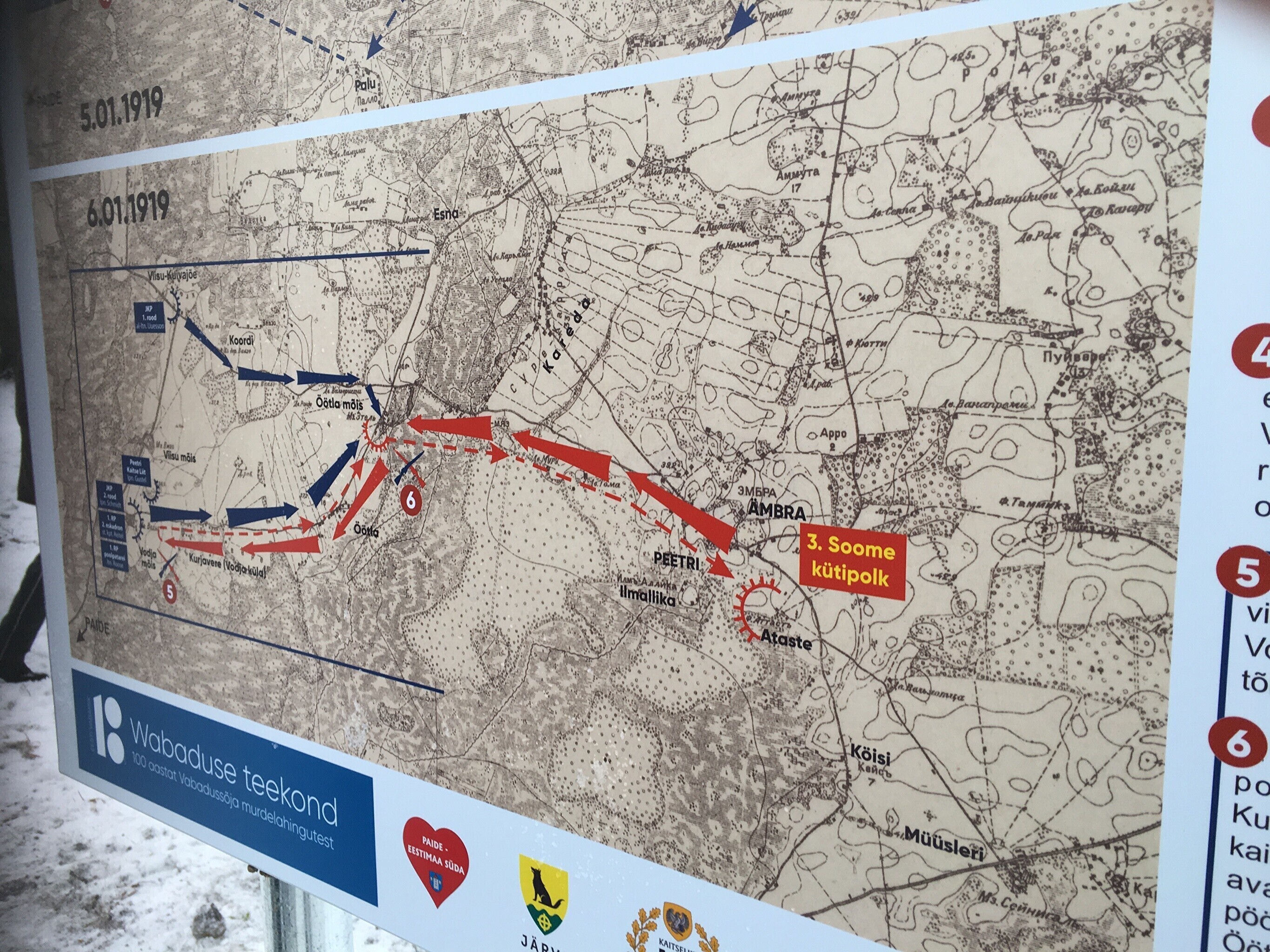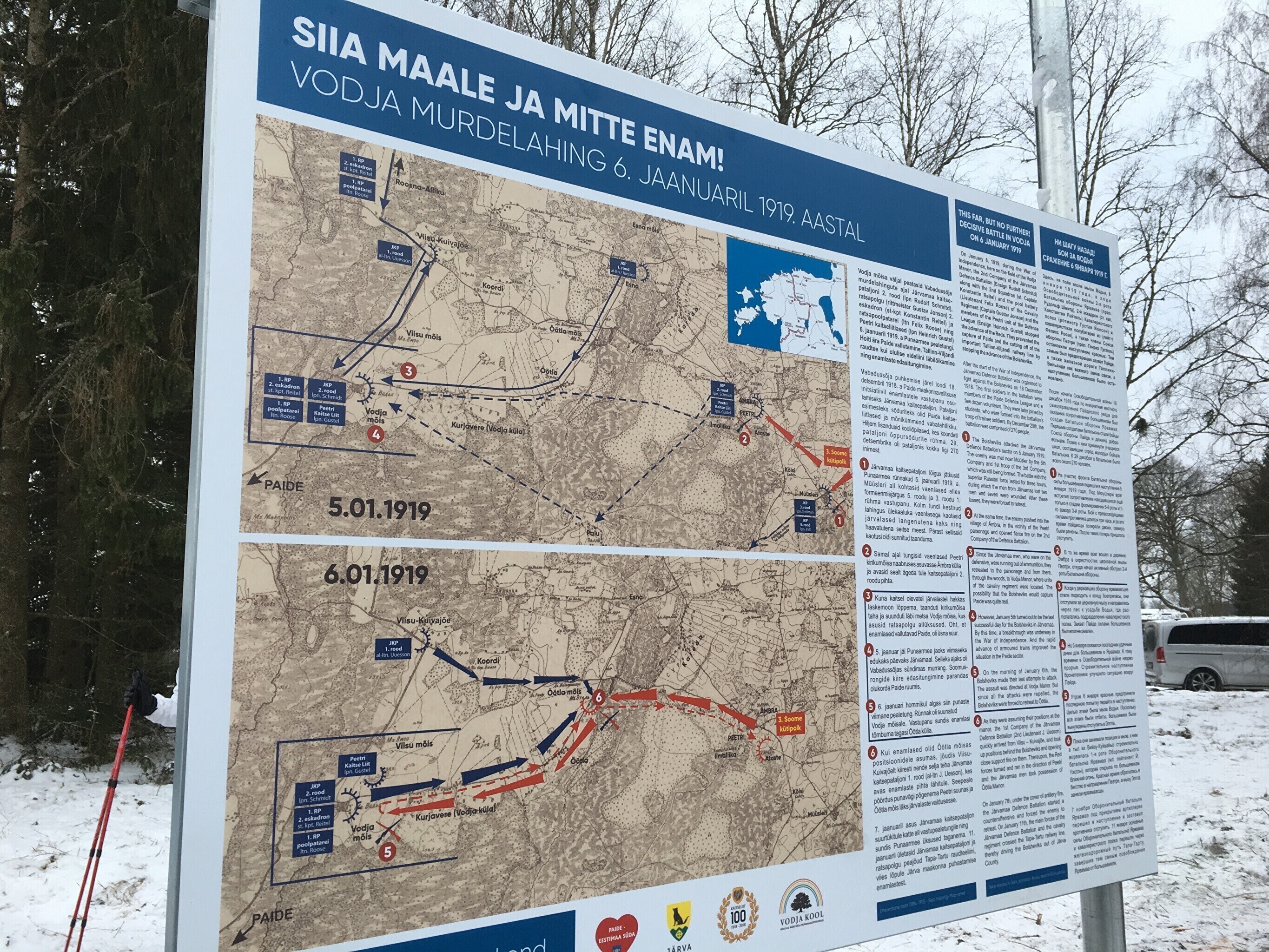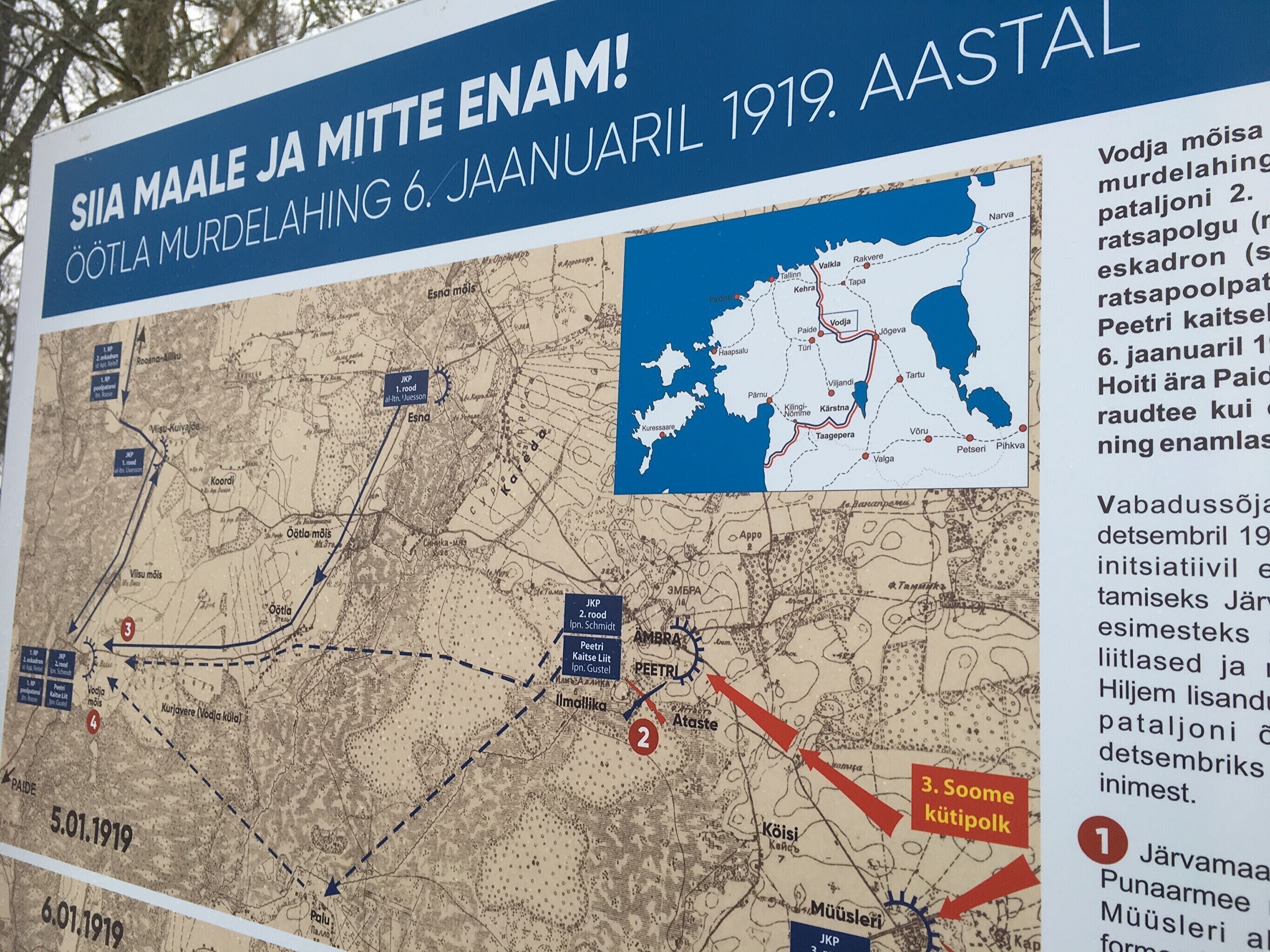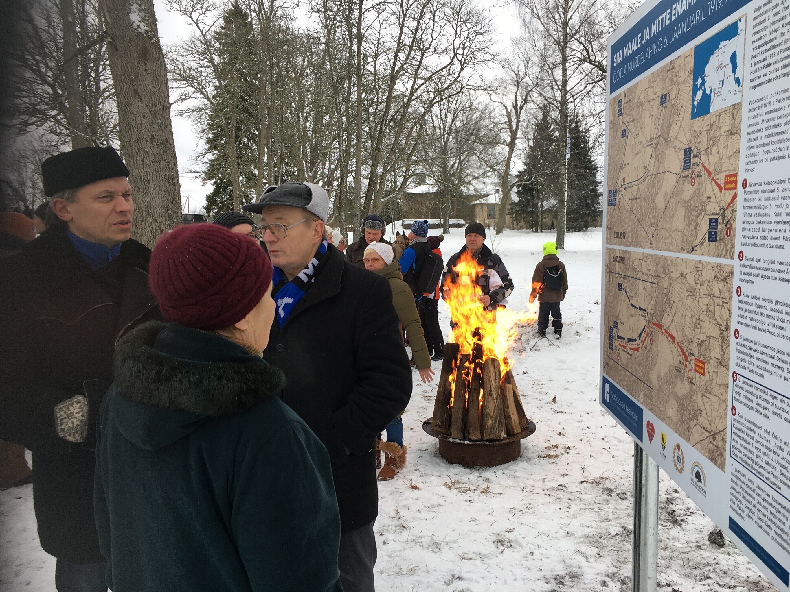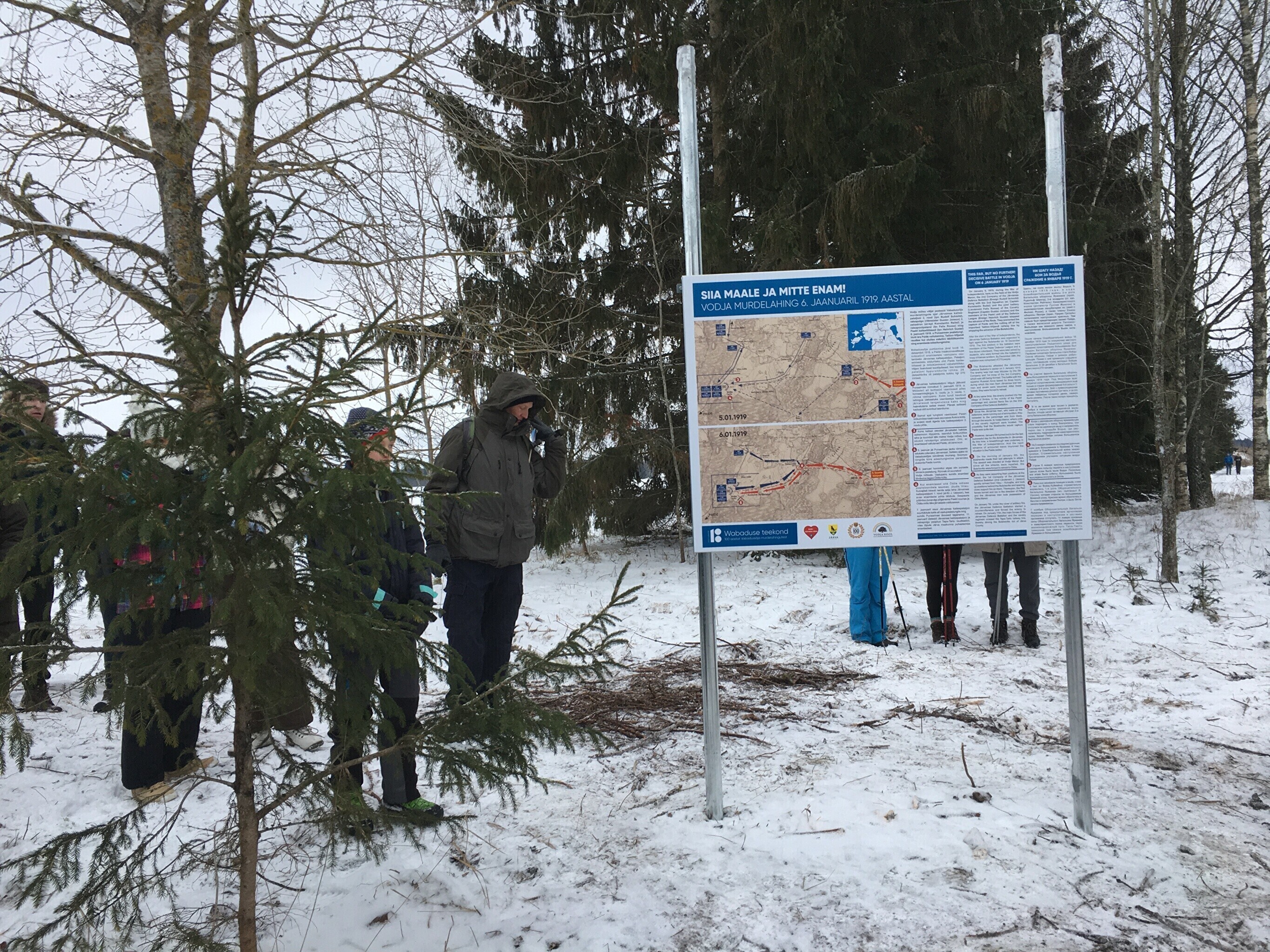 В воскресенье вдоль исторической линии фронта Освободительной войны в Эстонии прошли народные походы в память о переломных боях, которые состоялись с 3 по 7 января 1919 года. Около мызы Водья по этому случаю открыли мемориальную доску.