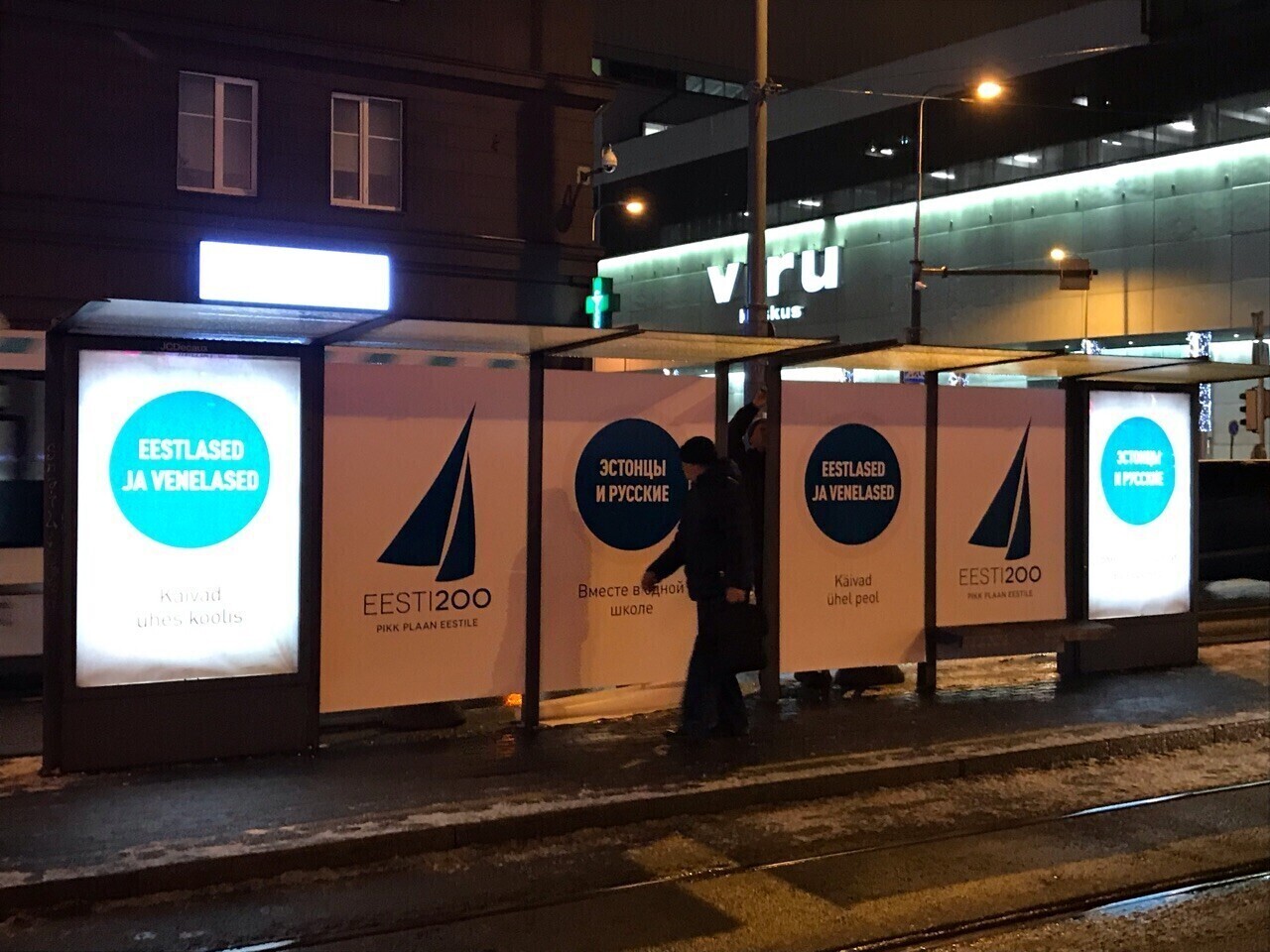 Скандальные рекламные плакаты на остановке "Хобуяама" в центре Таллинна, которые разделяли эстонцев и русских по национальному признаку, разместила партия "Эстония 200". Эту информацию официально подтвердила лидер политической организации Кристина Каллас. Во вторник рано утром плакаты были заменены.