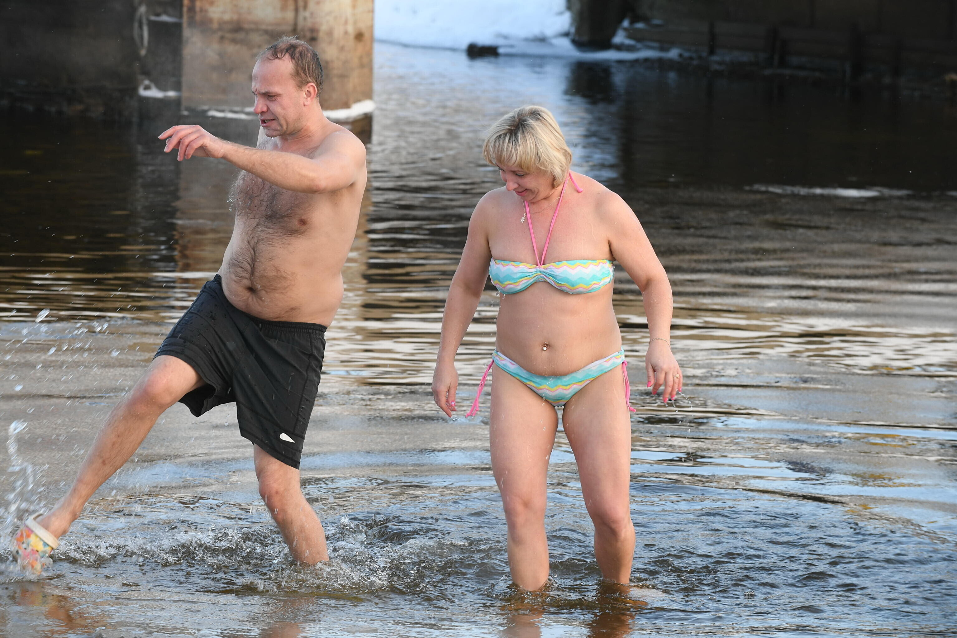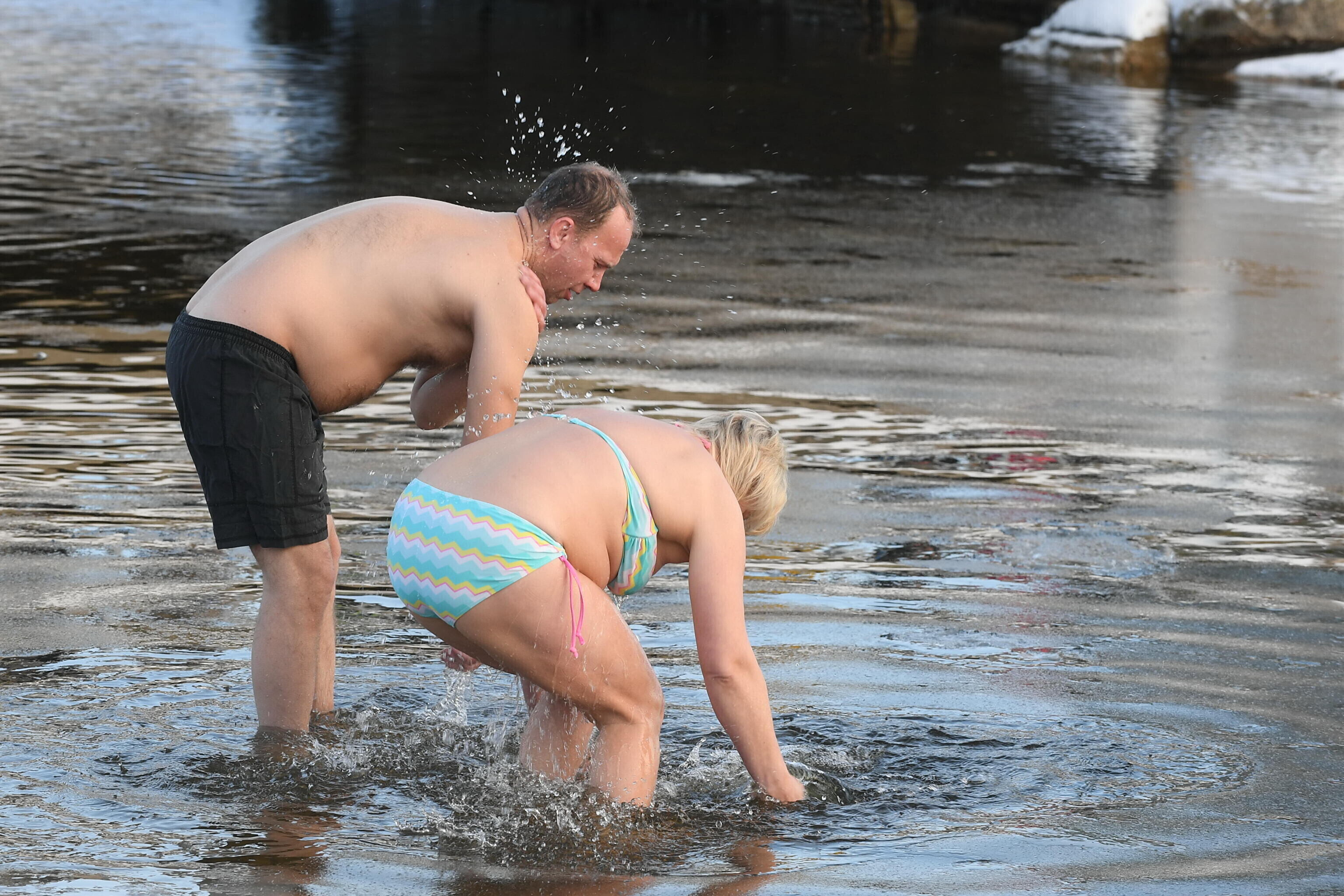 По сообщению нарвского корреспондента ERR, желающих окунуться в ледяную воду было примерно 40 человек, в основном мужчин.