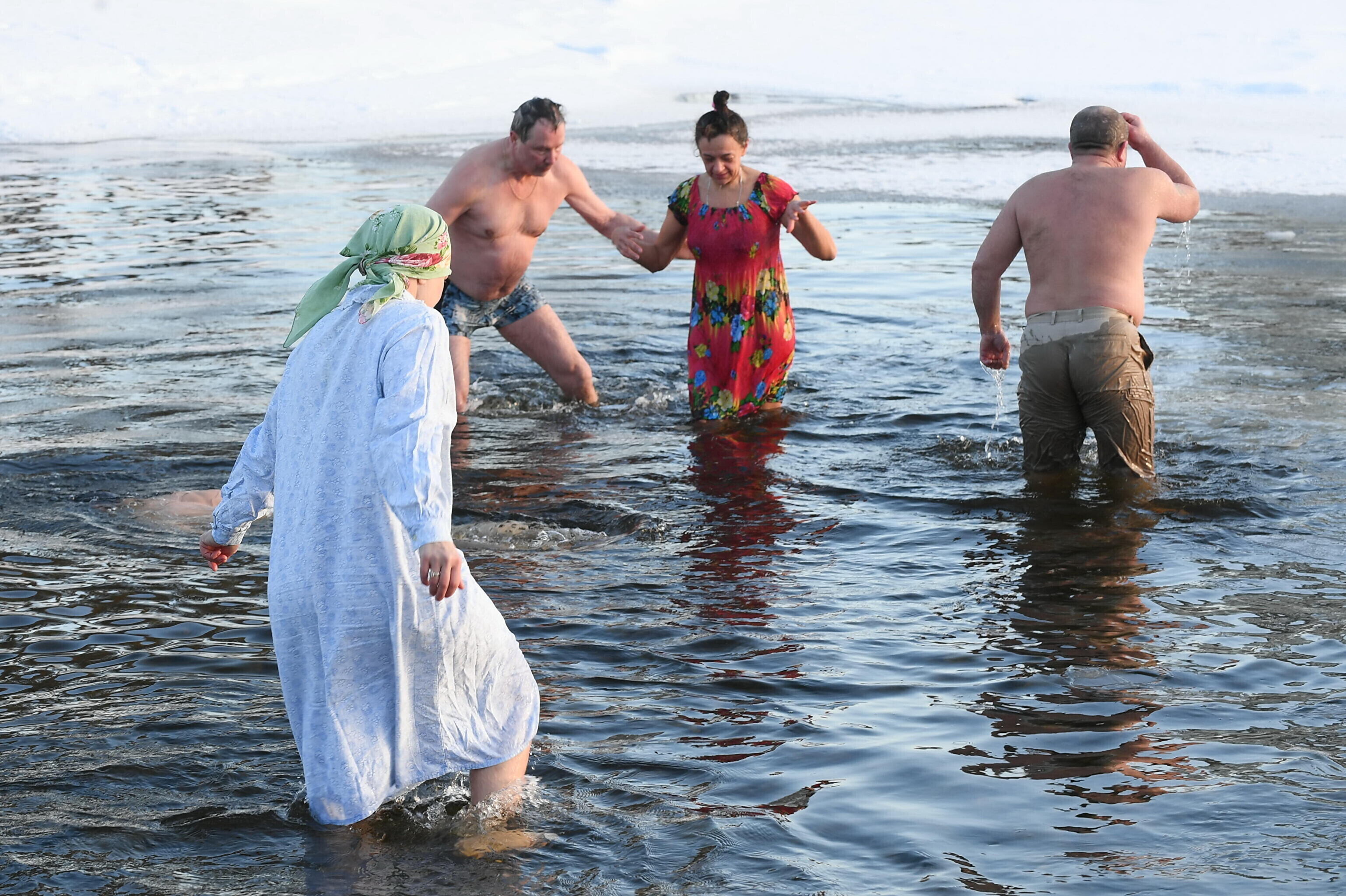 С 18 на 19 января православные христиане отмечают Богоявление (Крещение Господне). Купания в проруби – давняя традиция православных. В храмах прошли торжественные литургии и освящение воды.
