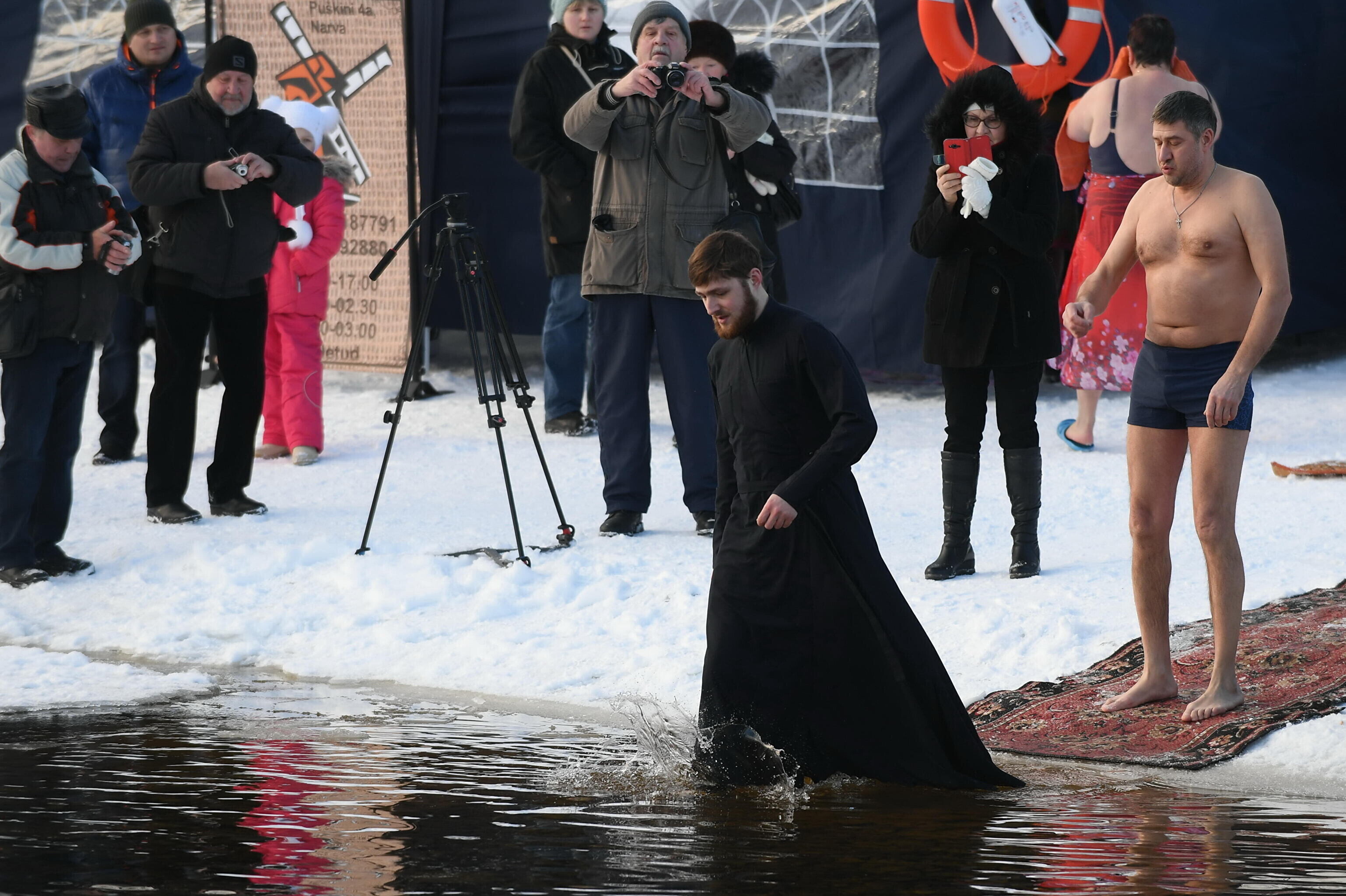 ФОТО и ВИДЕО: в Нарве на крещенские купания решились около 40 человек, включая священника