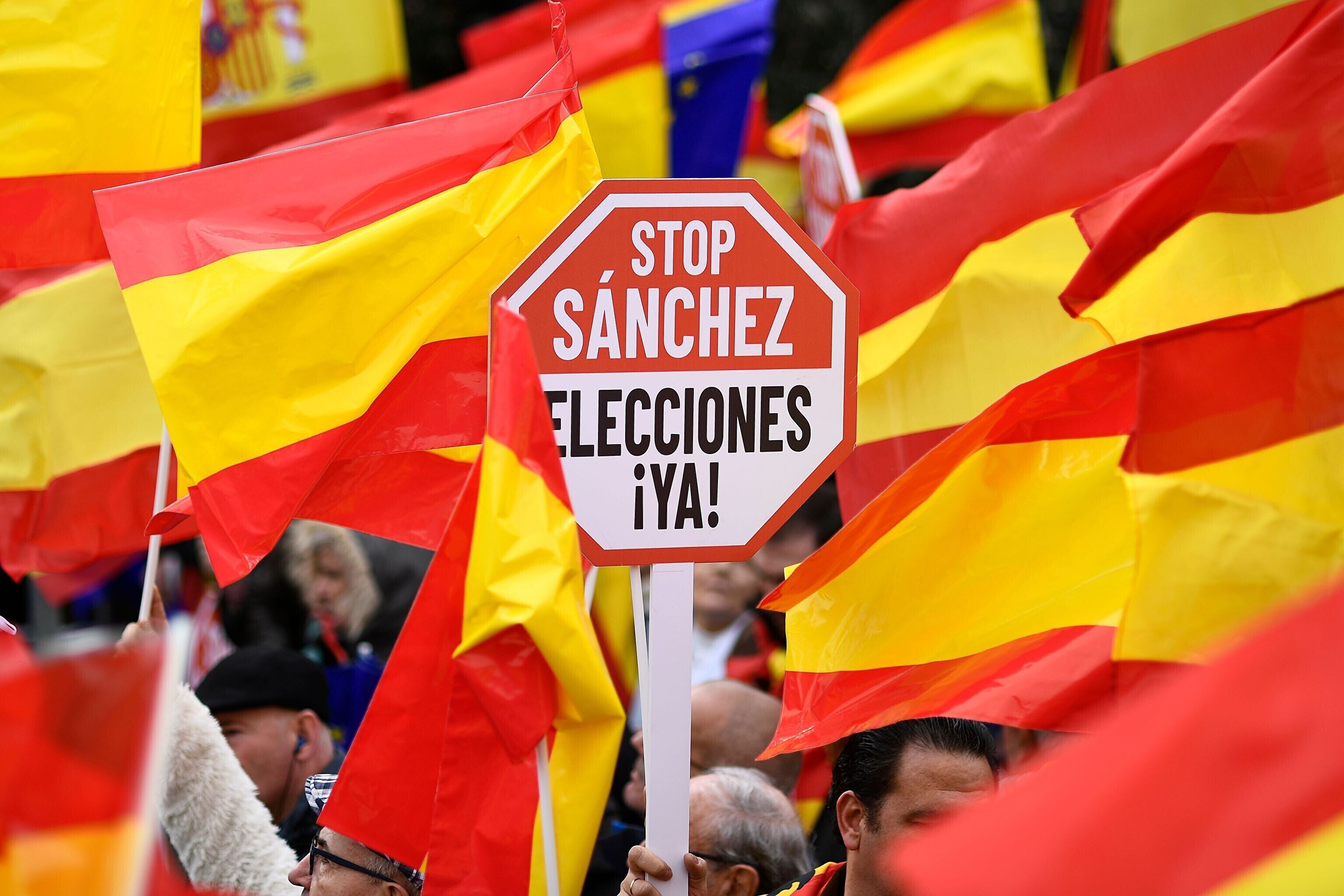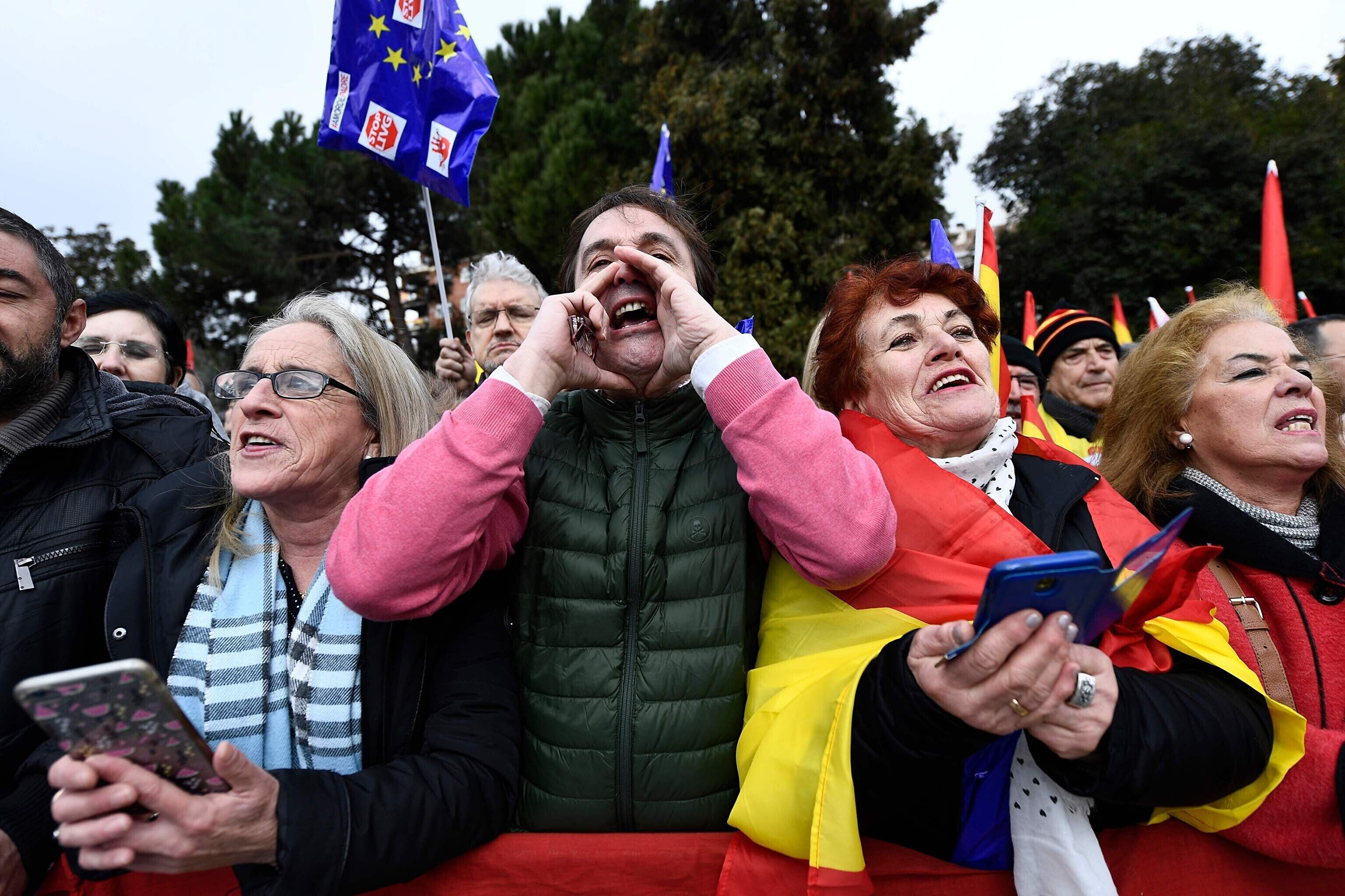 Акция протеста против политики правительства Педро Санчеса в отношении Каталонии прошла в воскресенье в центре Мадрида.