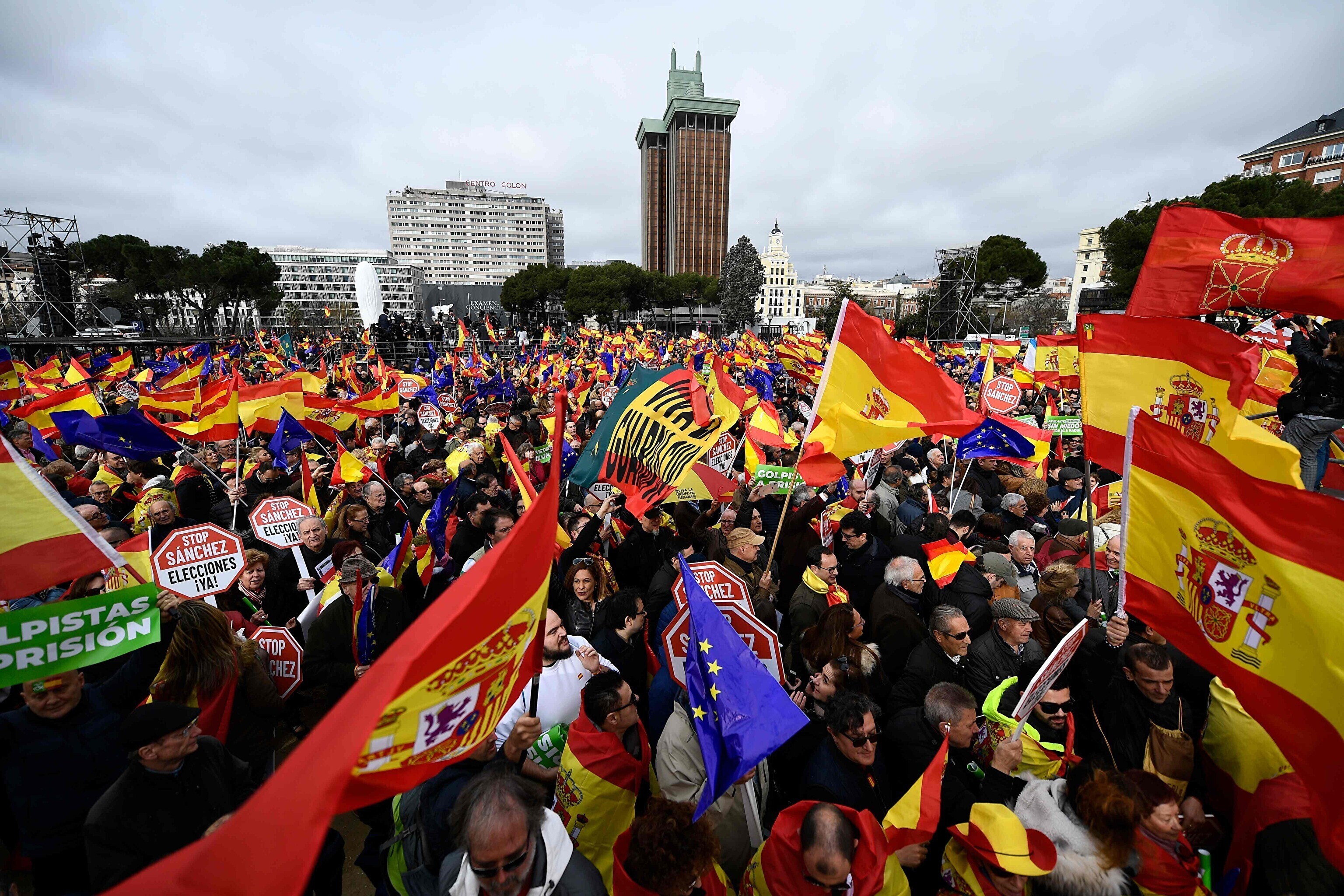 Несмотря на пасмурную погоду, по данным местных властей, к митингу присоединились не менее 45 тысяч человек. Акцию поддержали ключевые оппозиционные политические силы страны, в том числе консервативная Народная партия (НП), центристская "Граждане" и крайне правая "Вокс".