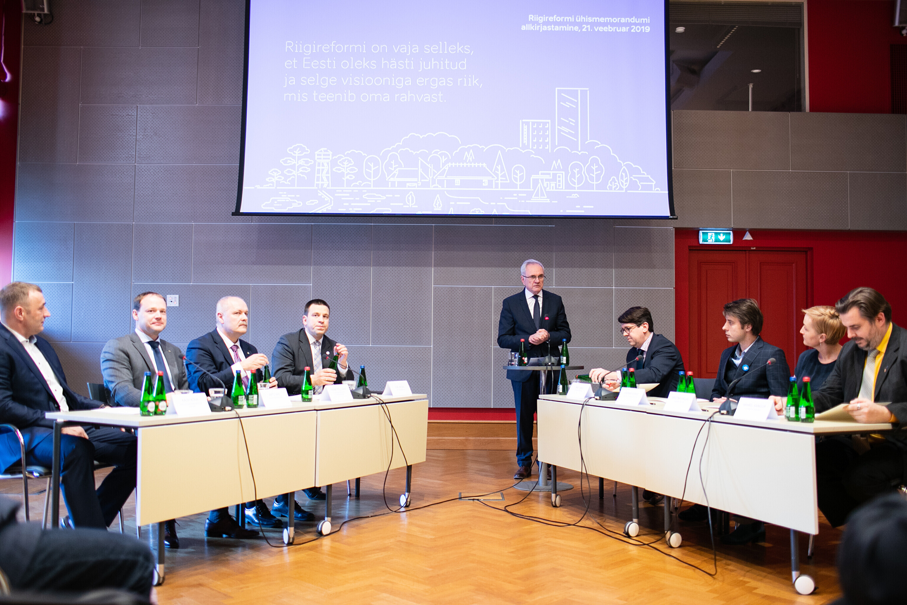 В четверг, 21 февраля представители восьми участвующих в Рийгикогу партий подписали меморандум, согласно которому одним из политических приоритетов коалиционного соглашения 2019-2023 годов станет проведение государственной реформы.