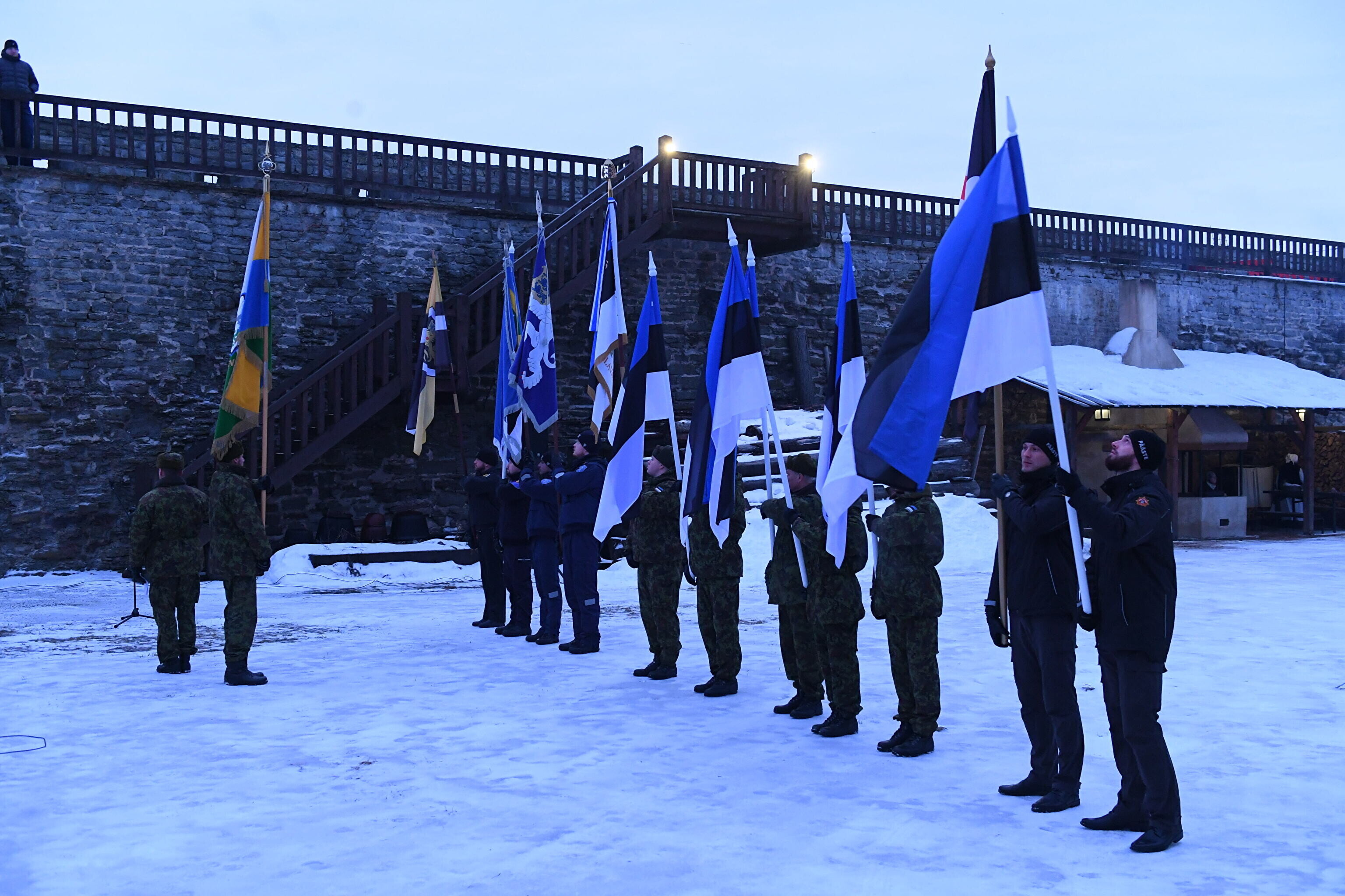 ФОТО: жители Нарвы встретили 101-ю годовщину независимости ЭР поднятием флага