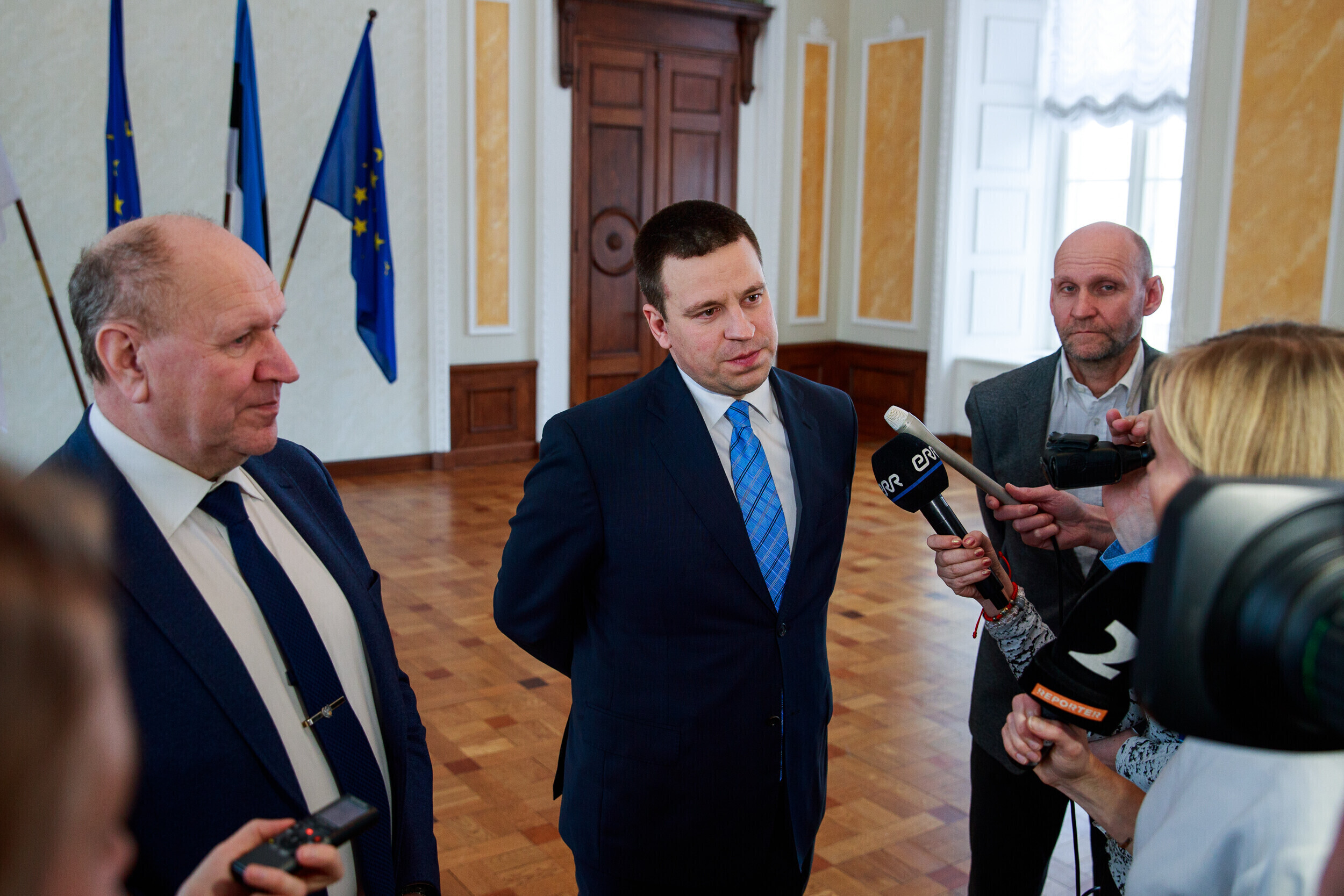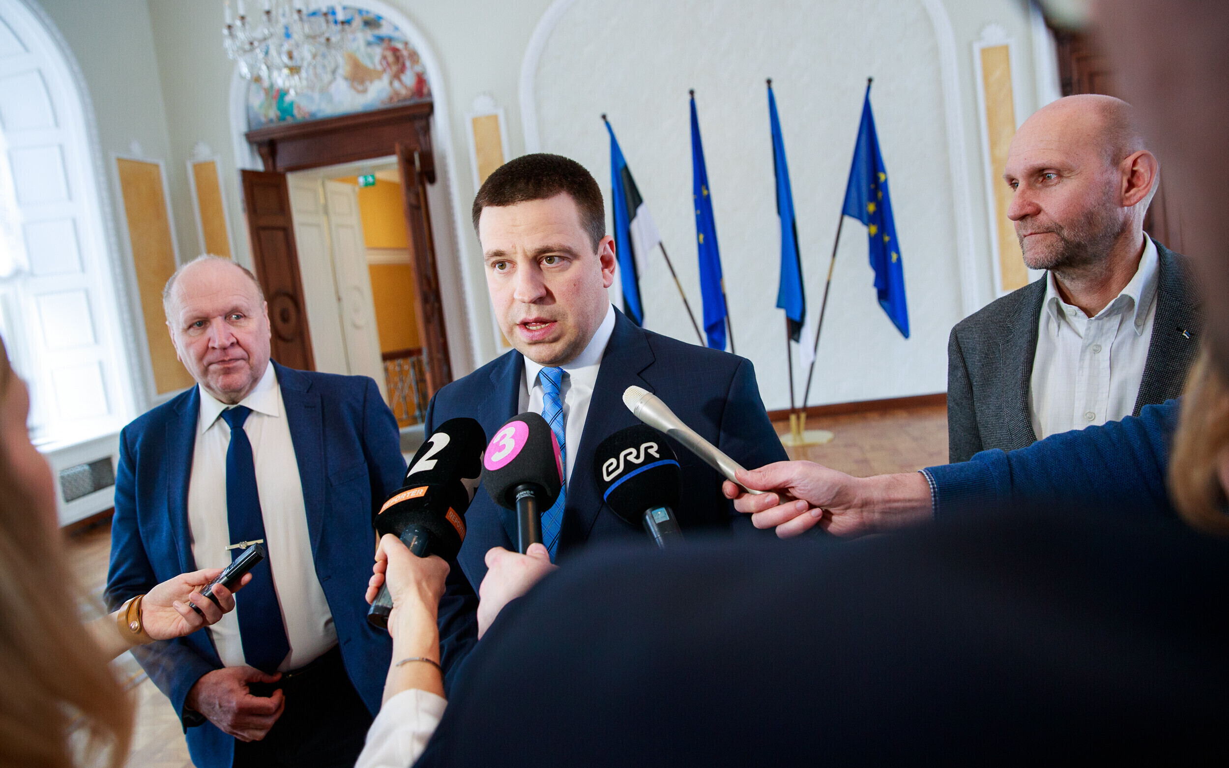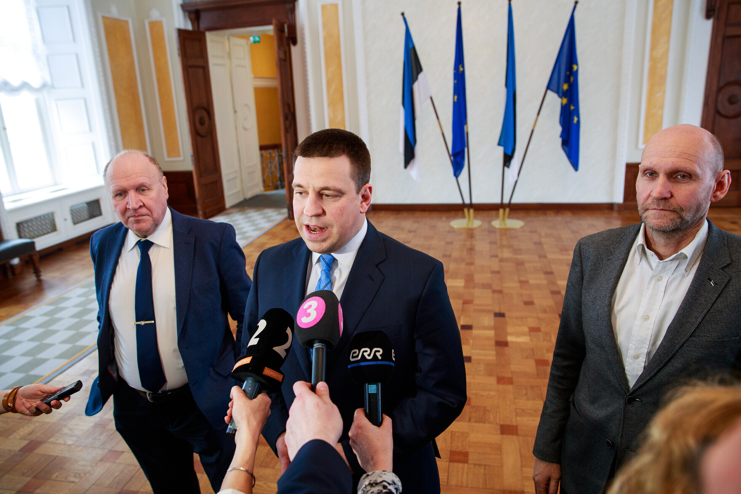Во вторник, 12 марта, в замке Тоомпеа начались коалиционные переговоры между Центристской партией, EKRE и Isamaa. По итогам первого заседания делегаций лидер центристов Юри Ратас заявил, что разговоры о расколе в его партии преувеличены и что он не пытается любой ценой держаться за кресло премьер-министра.