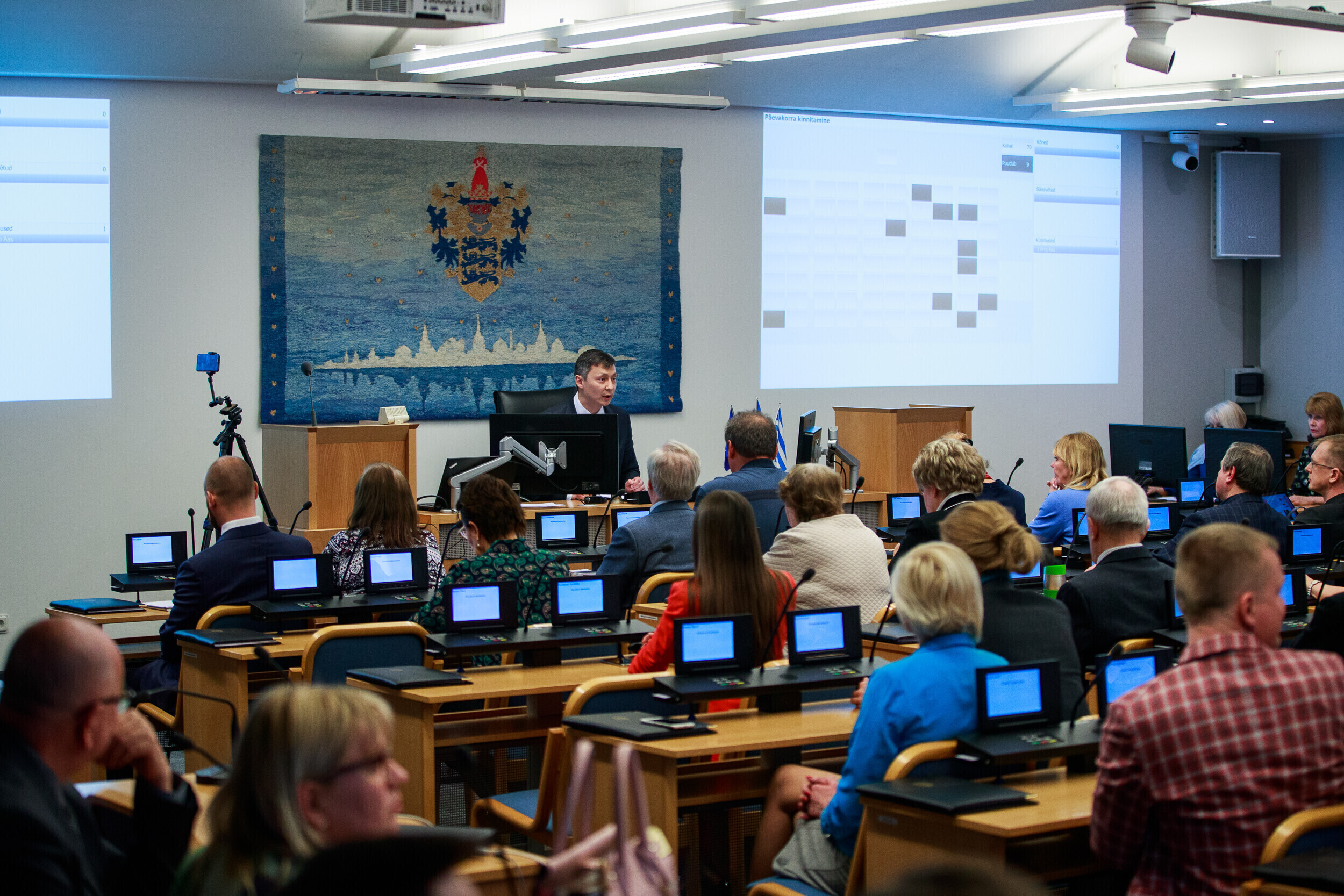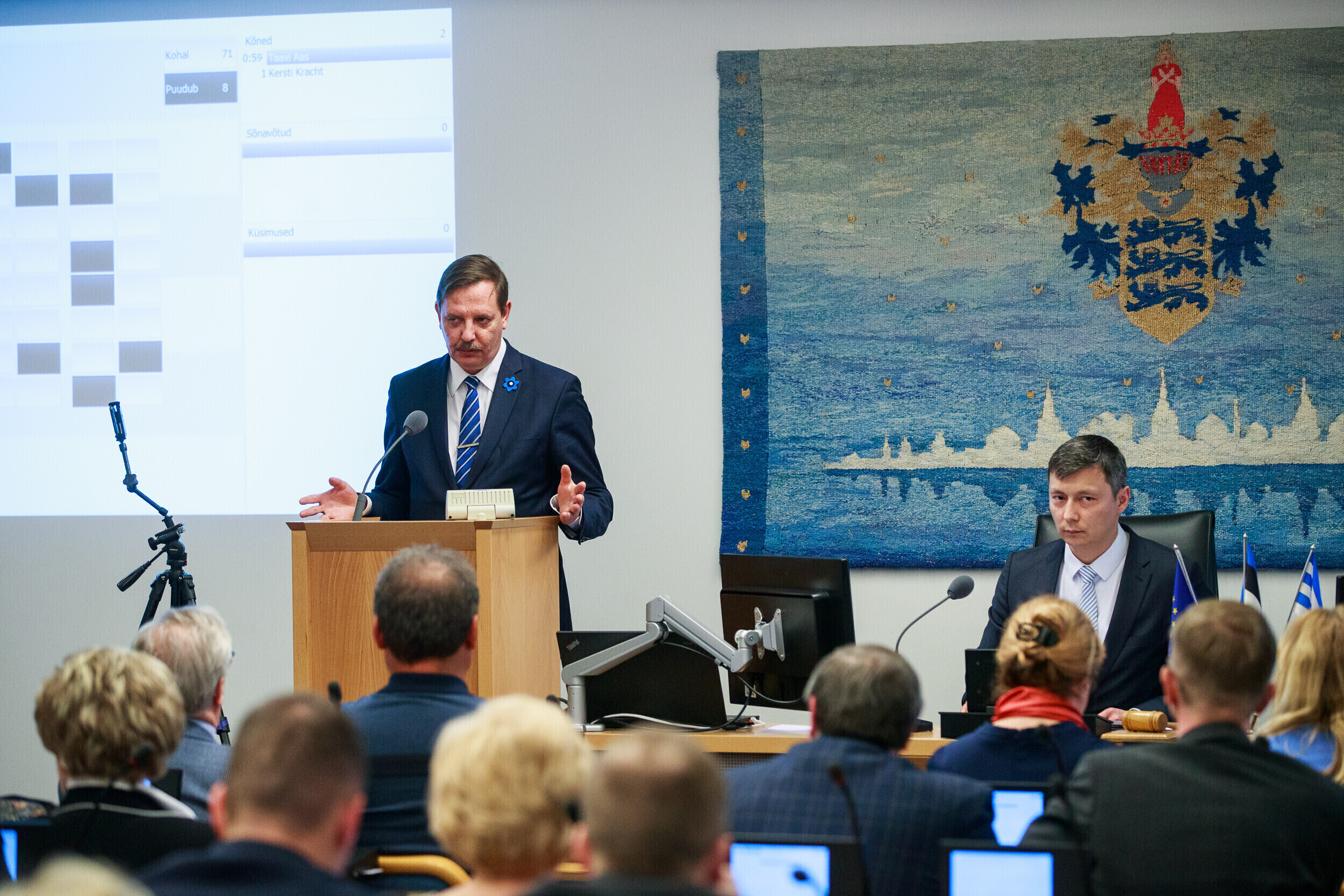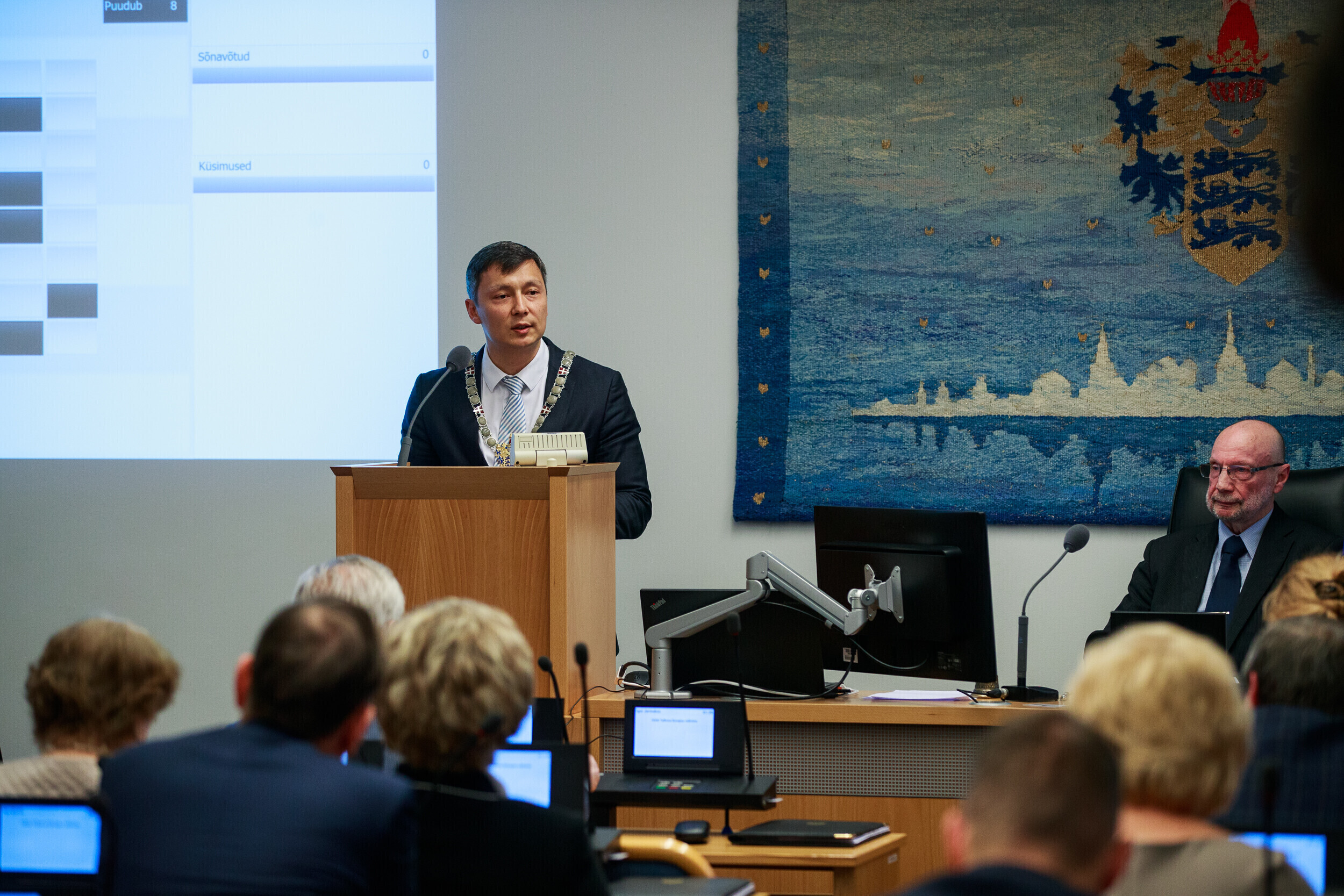 В Таллиннском горсобрании у правящей Центристской партии 39 мест, у находящихся в оппозиции Партии реформ - 17, СДП - 9, EKRE - 6 и Isamaa - 5. Еще три депутата - Эдгар Сависаар, Денис Бородич и Раймонд Кальюлайд - не входят ни в одну из фракций.