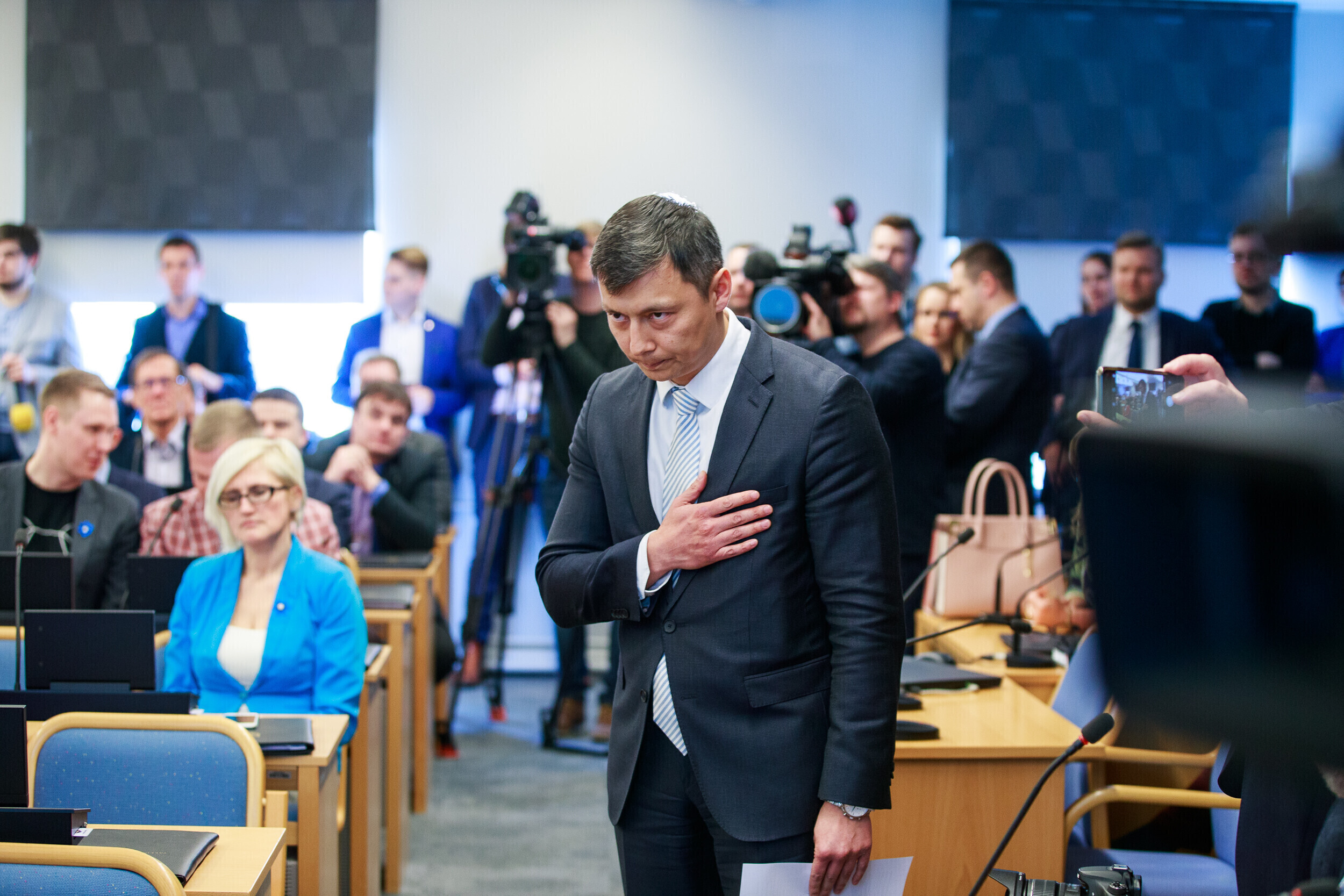 Представляющая Консервативную народную партию Эстонии (EKRE) Керсти Крахт поблагодарила ушедшего с поста мэра Таави Ааса за проделанную работу и пожелала удачи Кылварту.