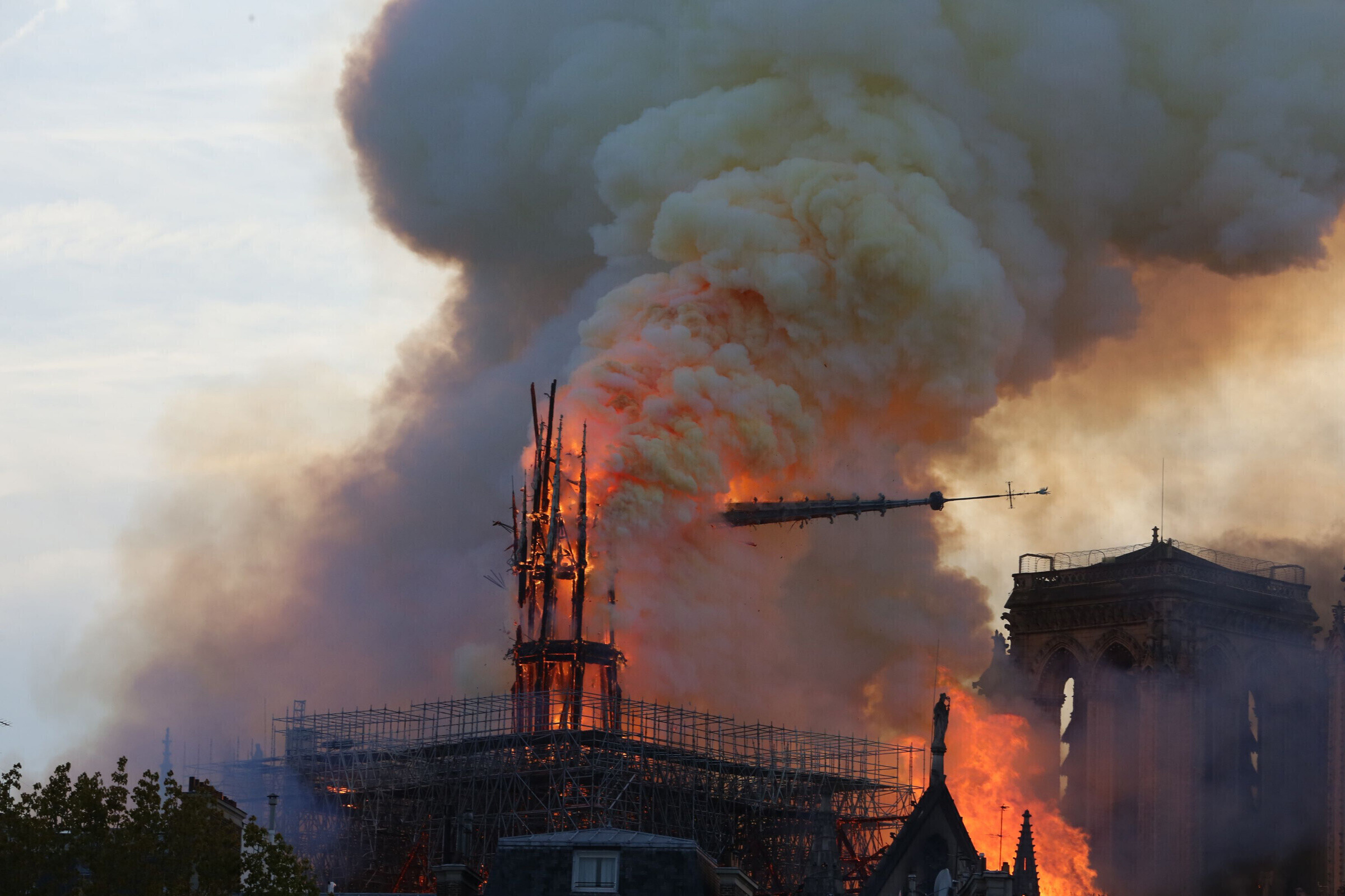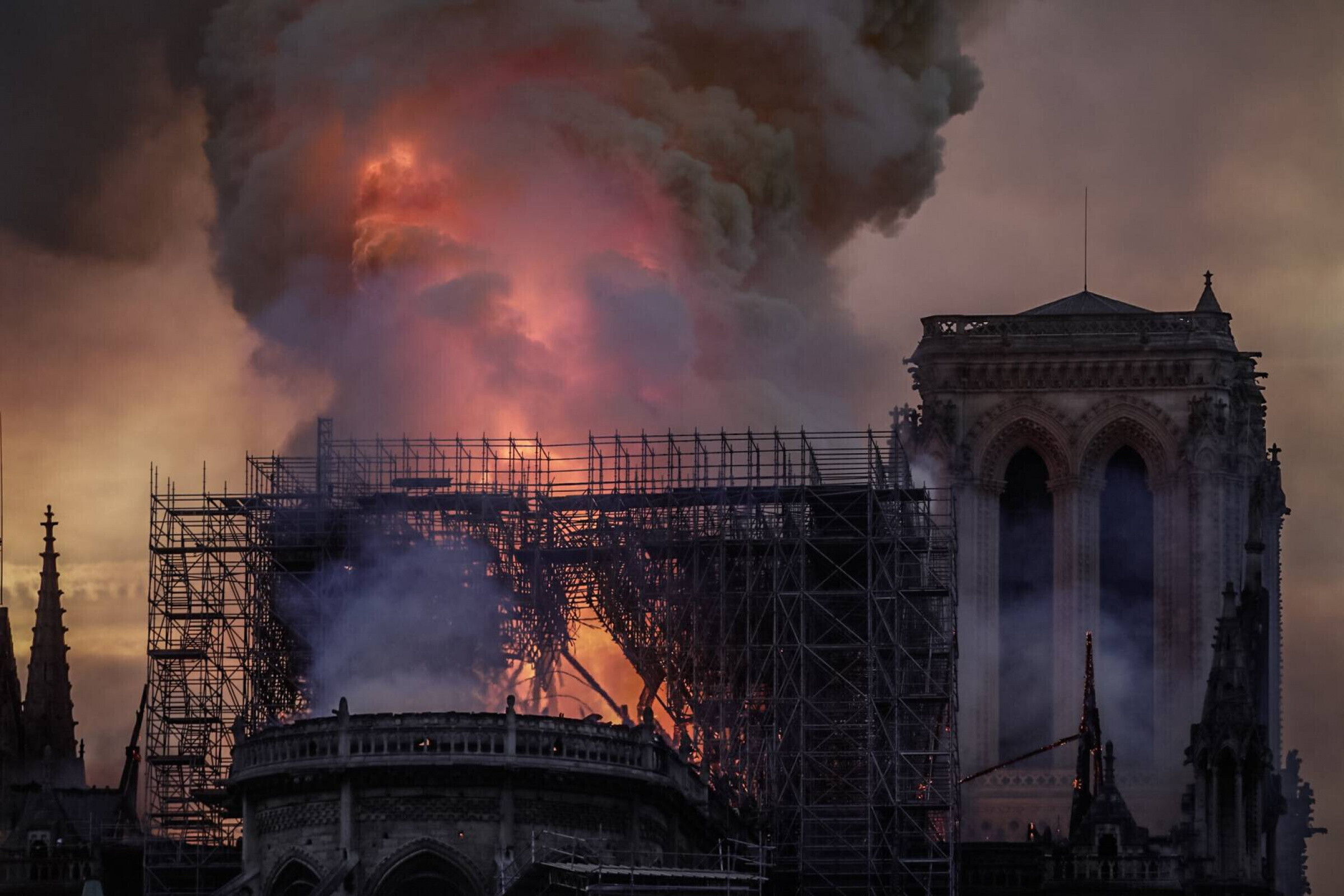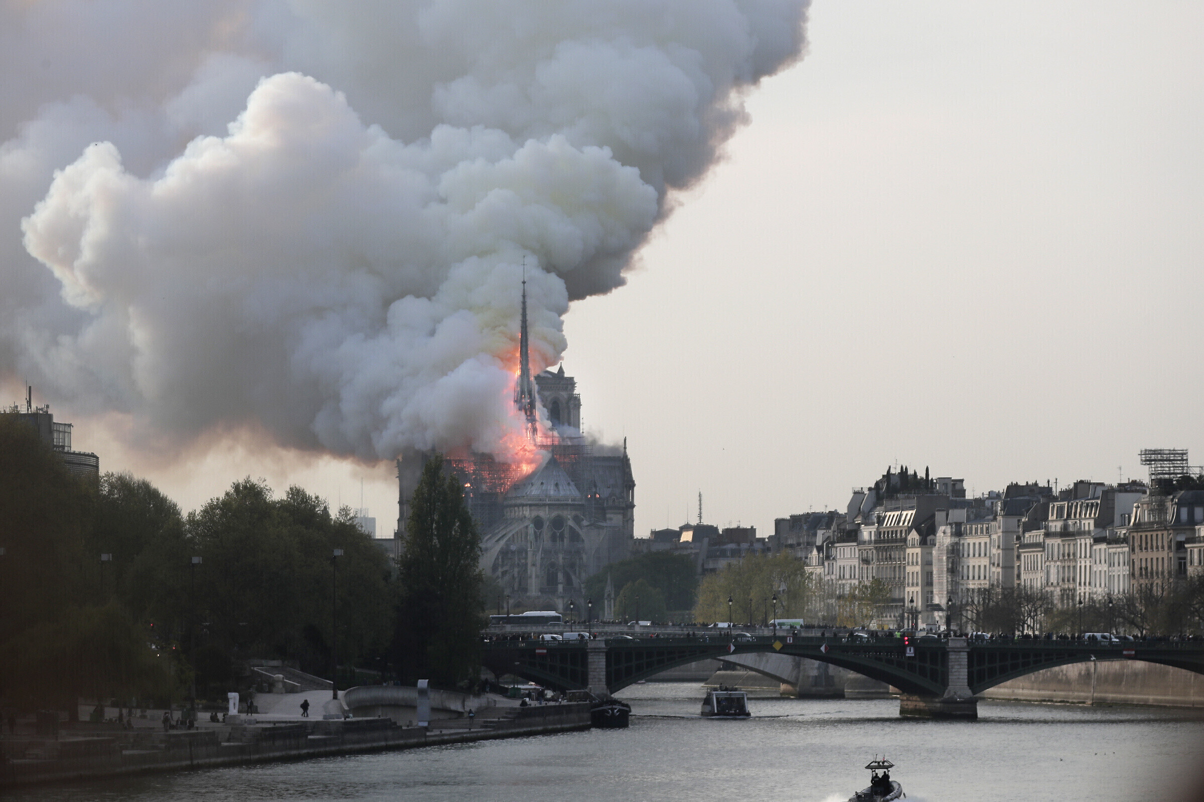 В соборе Парижской Богоматери в понедельник, 15 апреля, вспыхнул пожар, из-за которого обрушился шпиль и кровля. Открытое горение в Нотр-Даме продолжалось более девяти часов. Во вторник утром пожарные потушили последние очаги возгорания. По словам президента Франции Эмманюэля Макрона, "худшего удалось избежать".