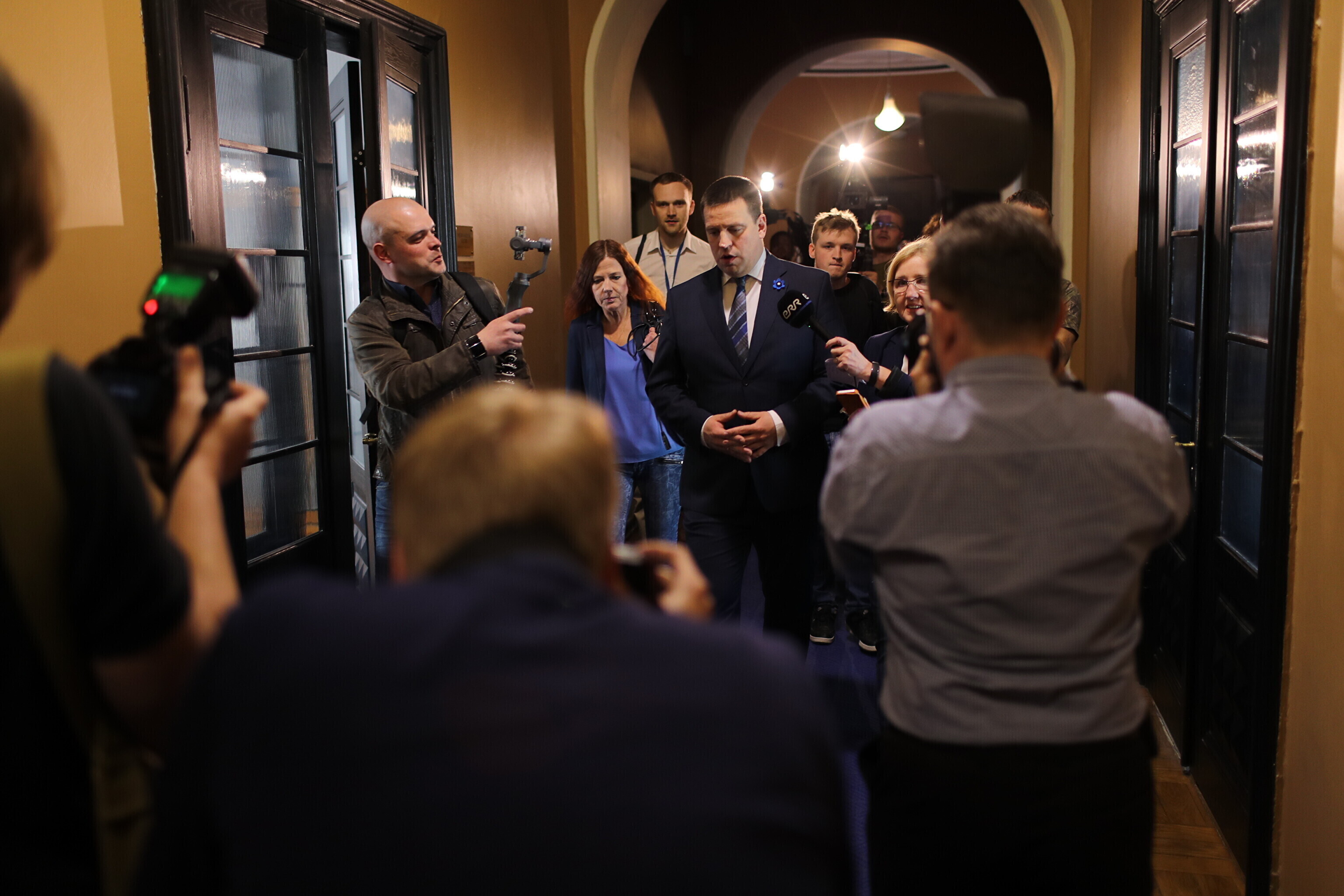 Выигравшая парламентские выборы Партия реформ в первые дни после окончания подсчета голосов предложила начать коалиционные переговоры Центристской партии, однако центристы отвергли это предложение и вступили в переговоры с EKRE и Isamaa, которые завершились 8 апреля подписанием трехстороннего коалиционного договора. Поскольку Раймонд Кальюлайд покинул Центристскую партию и стал внефракционным депутатом, создаваемая коалиция будет контролировать в Рийгикогу 56 мест.