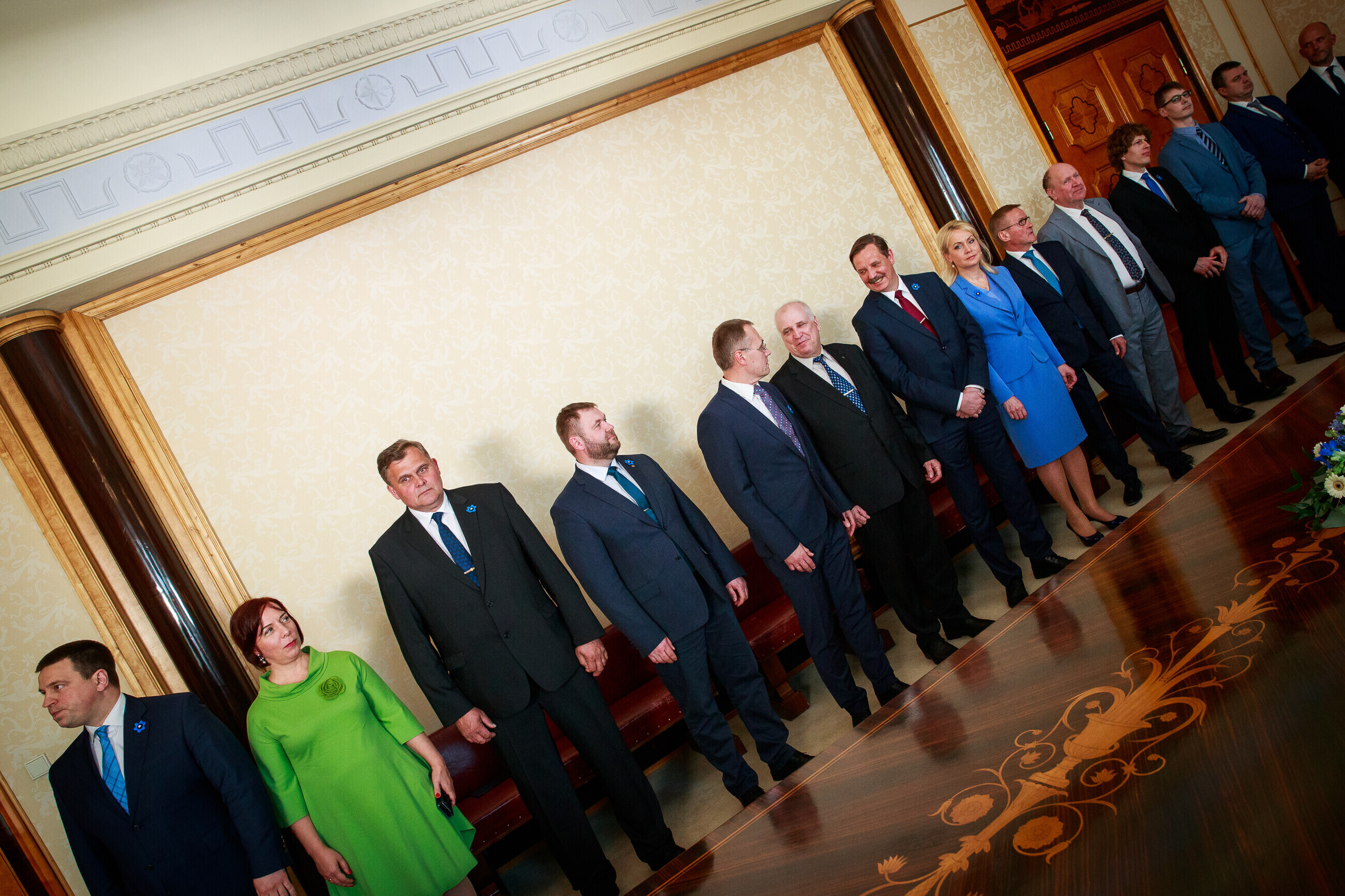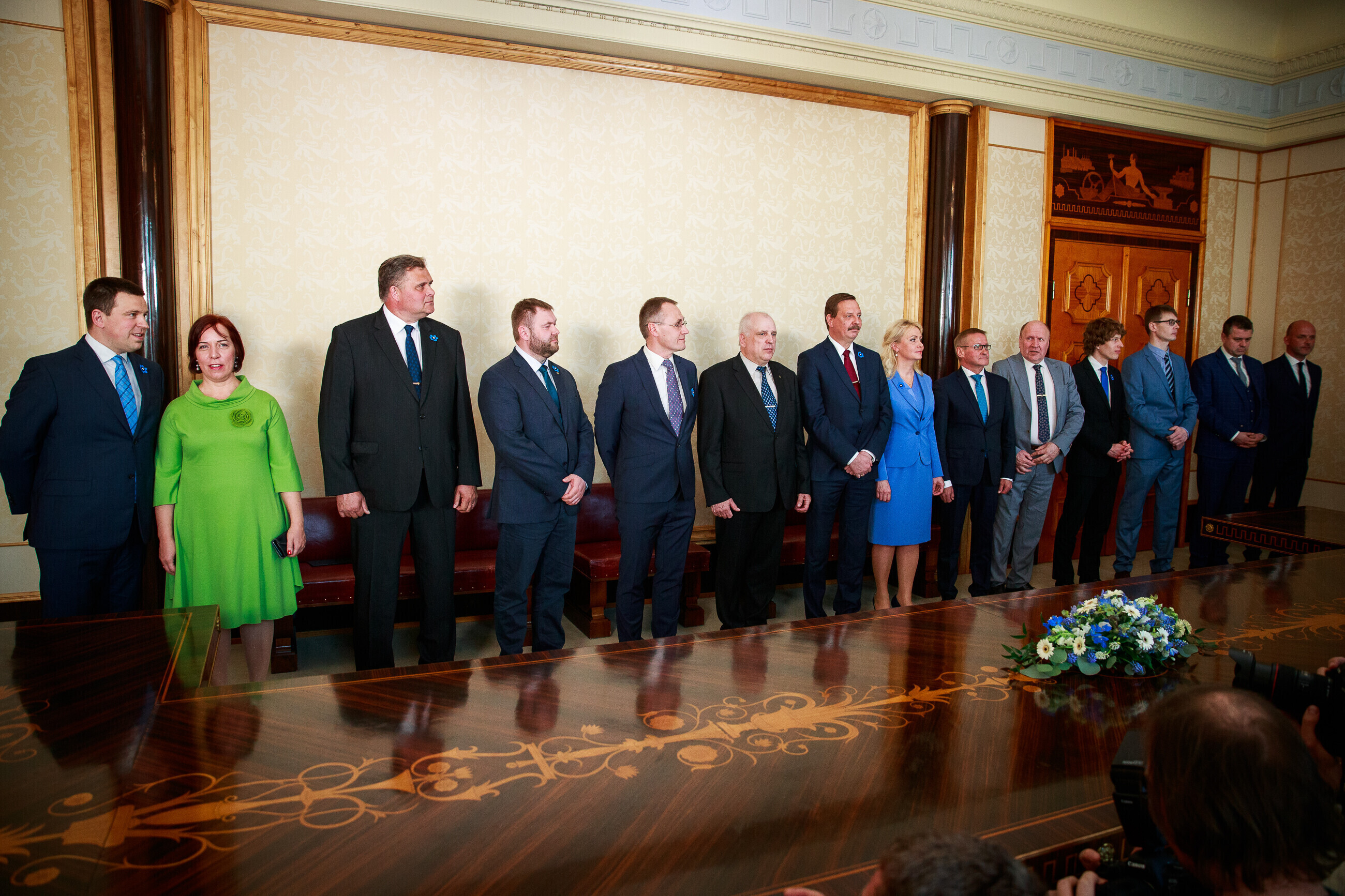 В состав нового правительства от Центристской партии входят премьер-министр Юри Ратас, министр образования и науки Майлис Репс, министр экономики и инфраструктуры Таави Аас, министр по делам регионов Яак Ааб, министр социальных дел Танель Кийк. Партию Isamaa представляют министр обороны Юри Луйк, министр юстиции Райво Аэг, министр иностранных дел Урмас Рейнсалу, министр по делам народонаселения Рийна Солман и министр культуры Тынис Лукас. EKRE представляют министр внутренних дел Март Хельме, министр финансов Мартин Хельме, министр окружающей среды Рене Кокк, министр сельской жизни Март Ярвик и министр внешней торговли и инфотехнологий Марти Куузик.