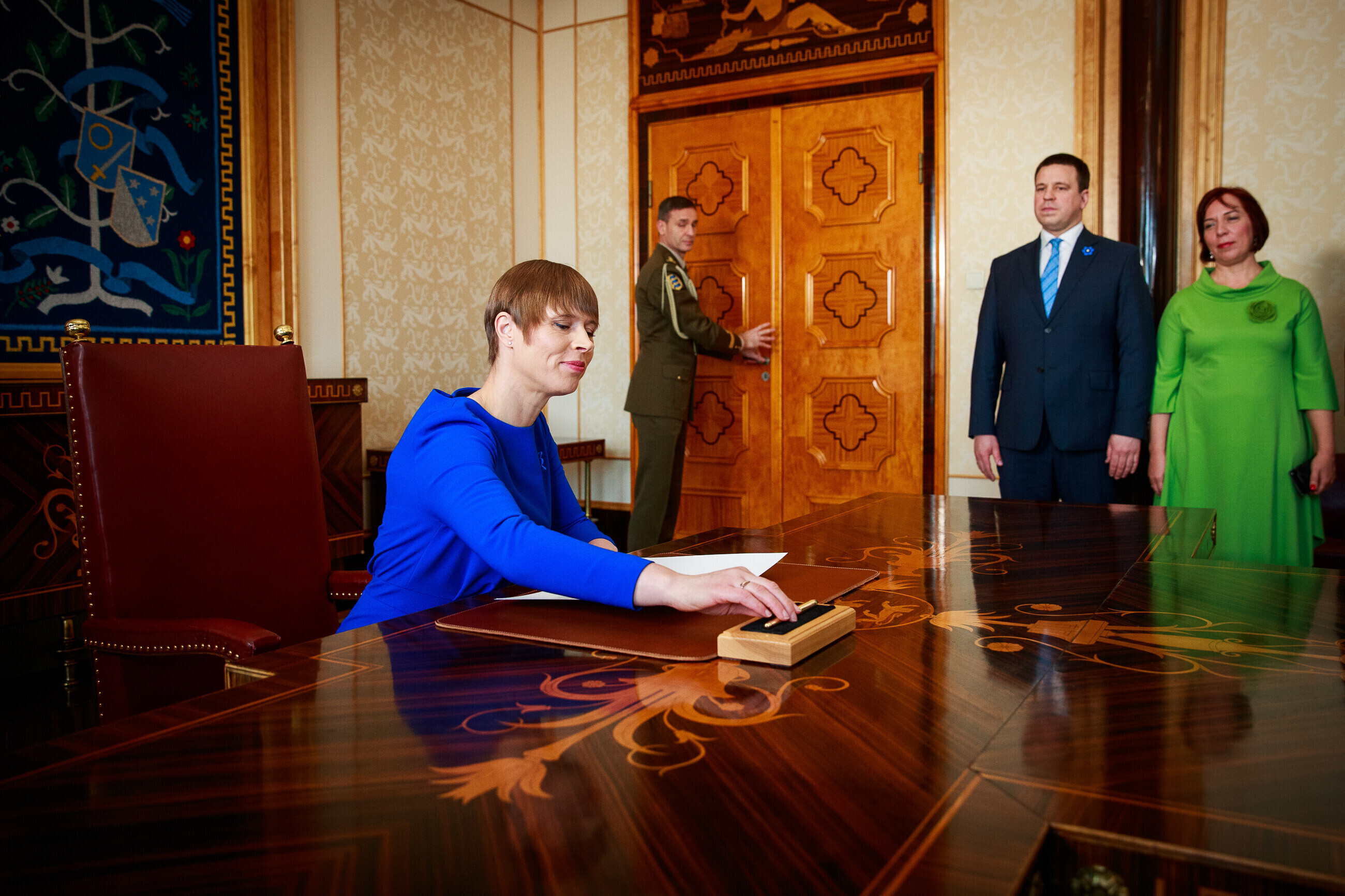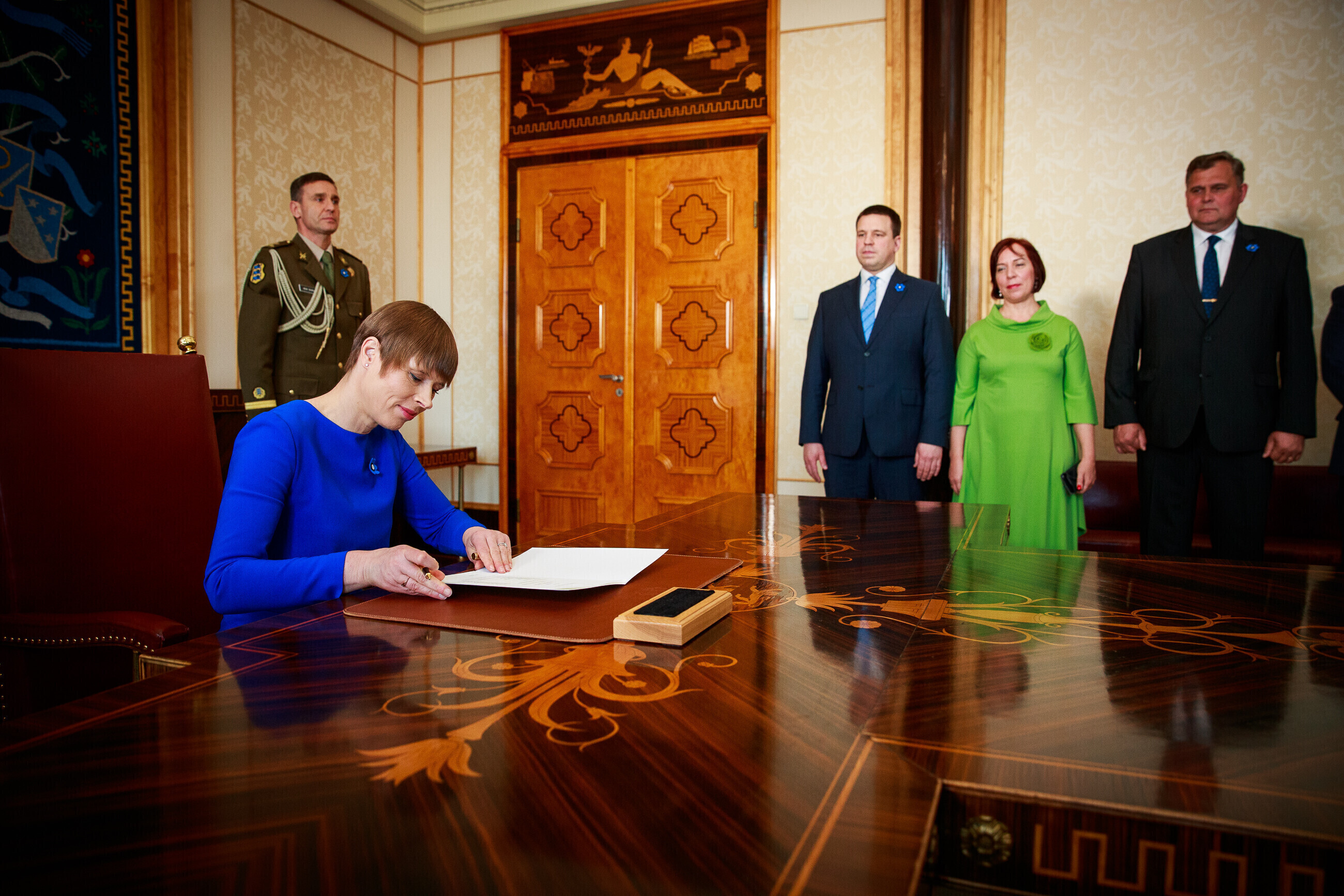 После заявления президент Кальюлайд подписала протокол, которым утвердила правительство коалиции Центристской партии, Консервативной народной партии Эстонии (EKRE) и Isamaa ("Отечество"). Правительство вступит в должность после того, как министры принесут присягу в Рийгикогу. Вероятно, это произойдет в следующий понедельник, 29 апреля.