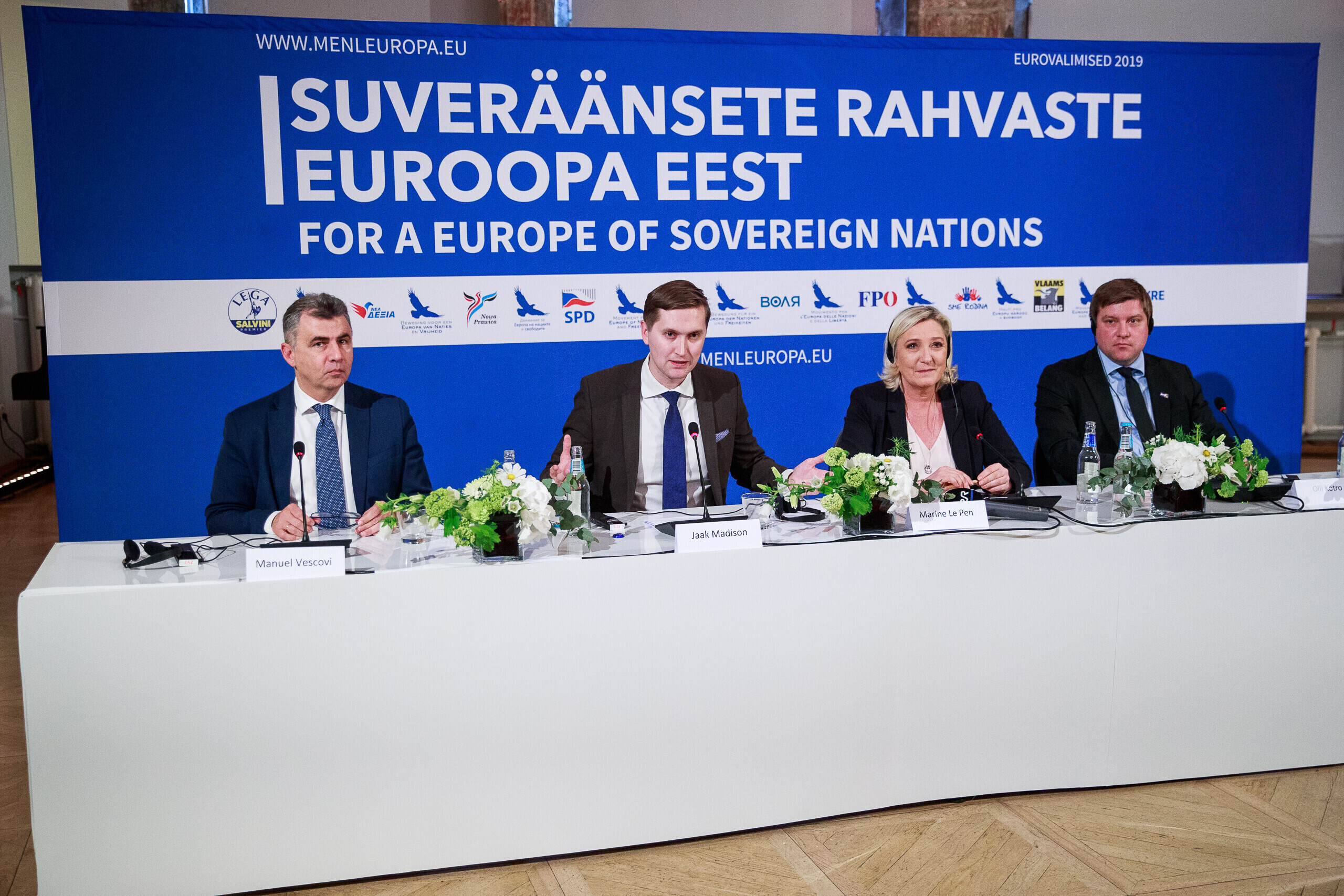 Как ранее сообщал портал rus.err.ee, во вторник, 14 мая, в таллиннском Доме братства черноголовых состоялась встреча, в которой приняли участие представители EKRE и их единомышленники из других европейских стран - глава Национального объединения Франции Марин Ле Пен, представитель "Истинных финнов" Олли Котро, Андерс Вистизен из Датской народной партии и Мануэль Вескови из итальянской "Лиги Севера".