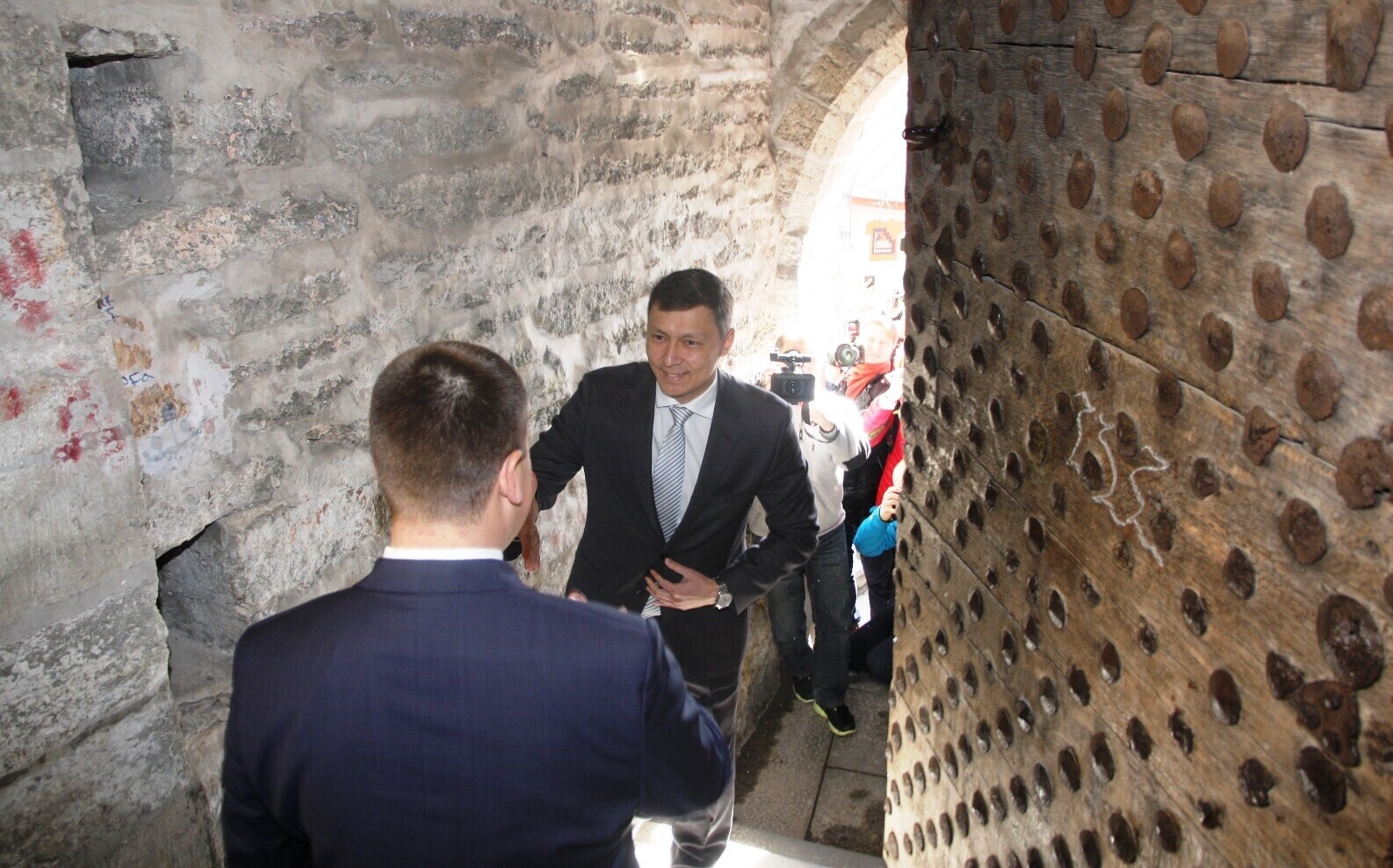 В среду, 15 мая, в День Таллинна премьер-министр Юри Ратас и столичный мэр Михаил Кылварт встретились у дверей башни на улице Люхике-Ялг.