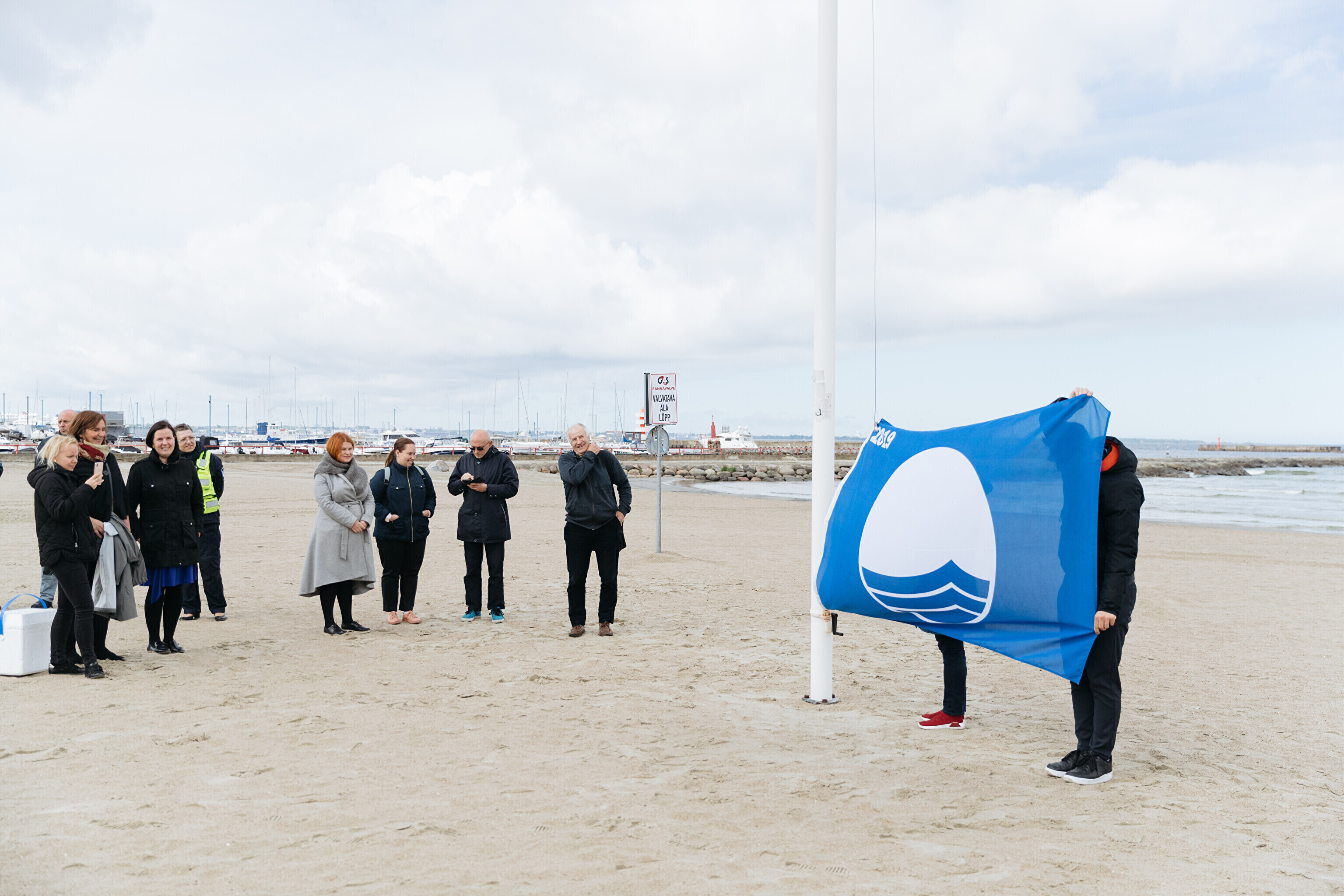Пляжный сезон на городском пляже Пирита начался с поднятия голубого флага – международного экологического знака качества. Это признание высокого качества воды в зоне купания, услуг и благоустройства.
