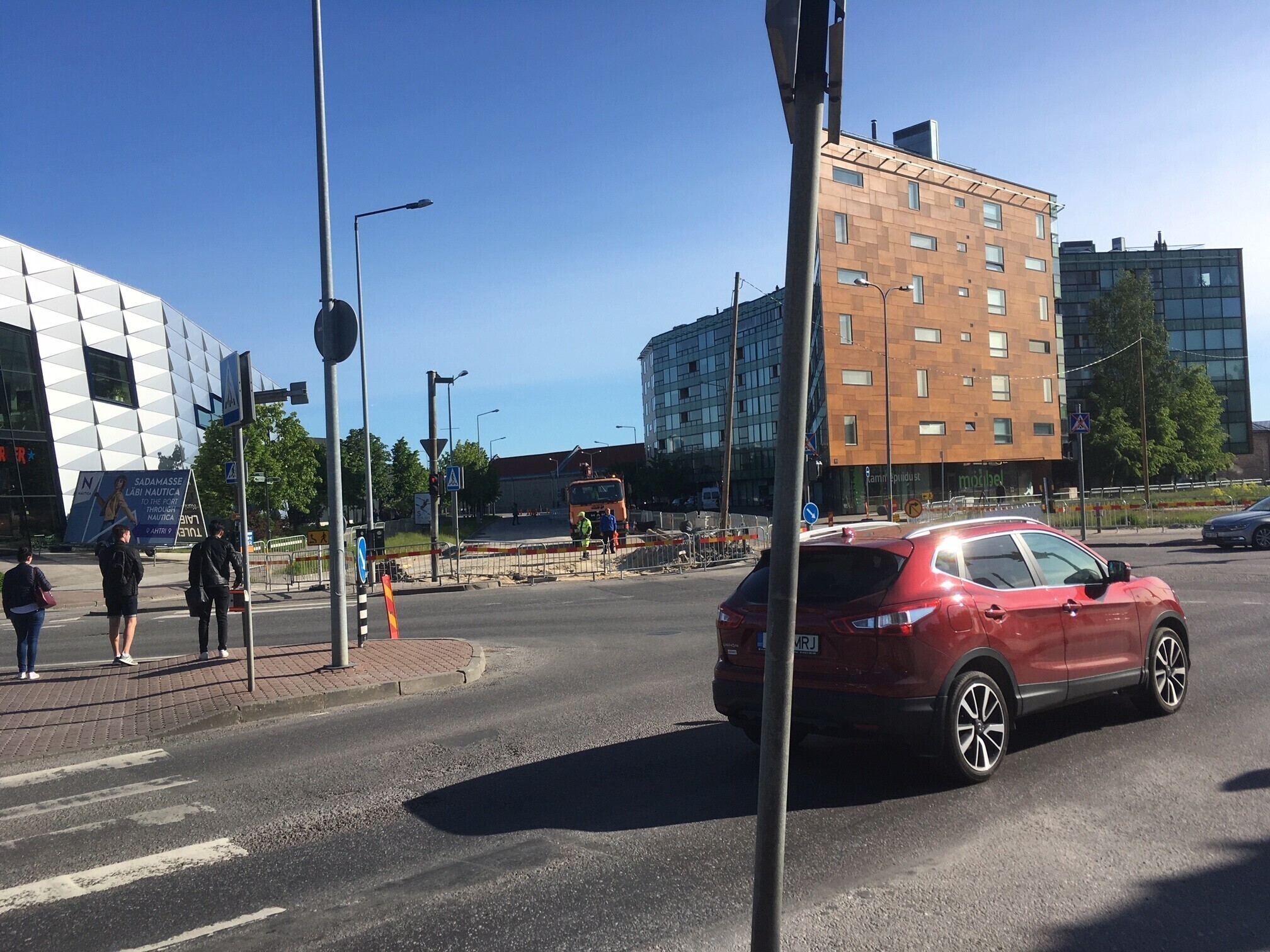 Непосредственно перед перекрестком закрыта часть улицы Ахтри со стороны торгового центра Nautica. Проехать через перекресток можно по противоположной стороне улицы Ахтри (направление в сторону Туукри), где открыто по одной полосе движения в обе стороны.