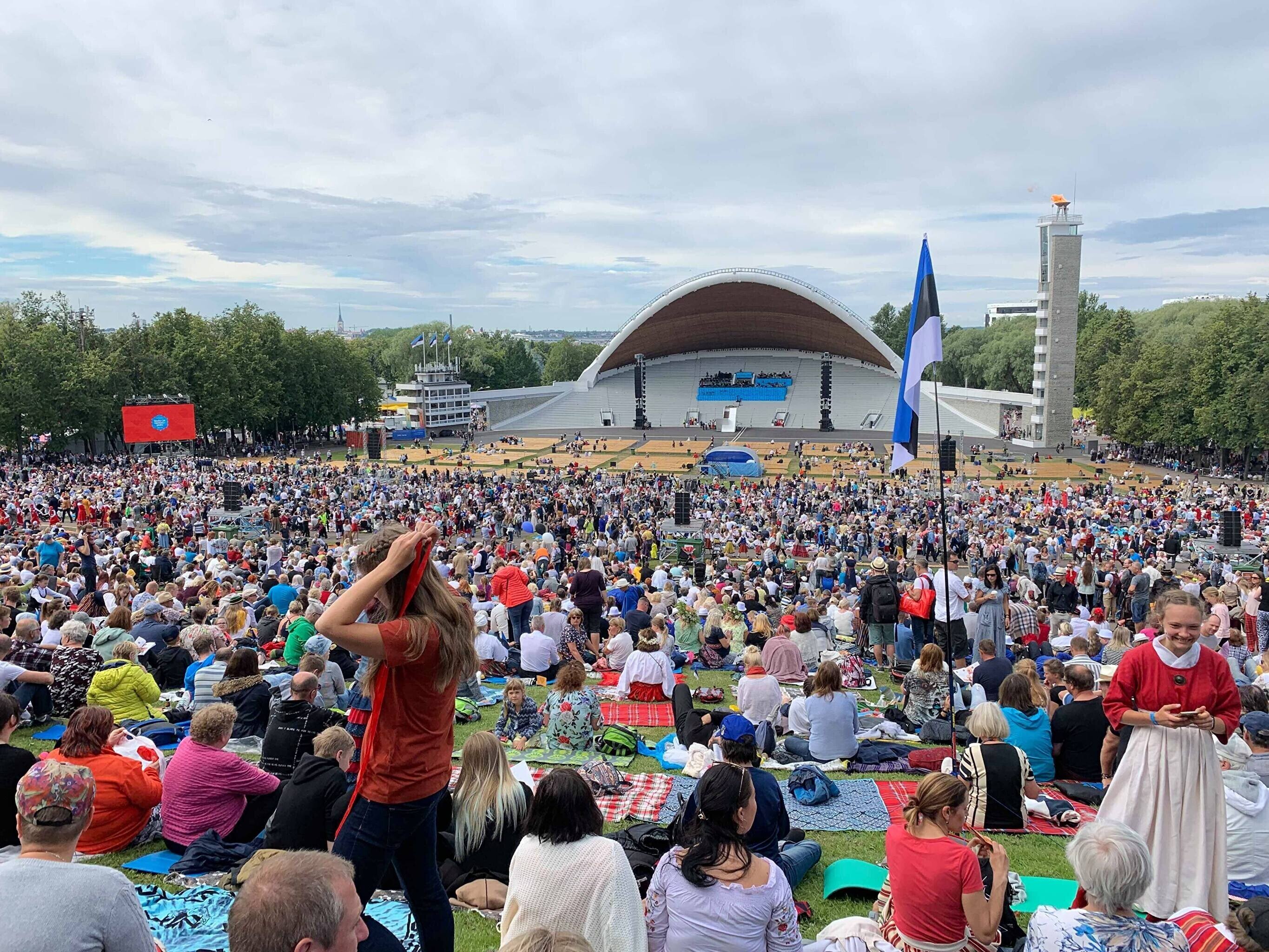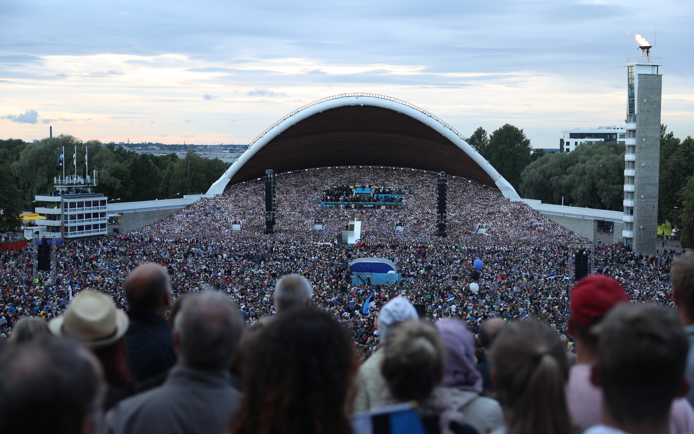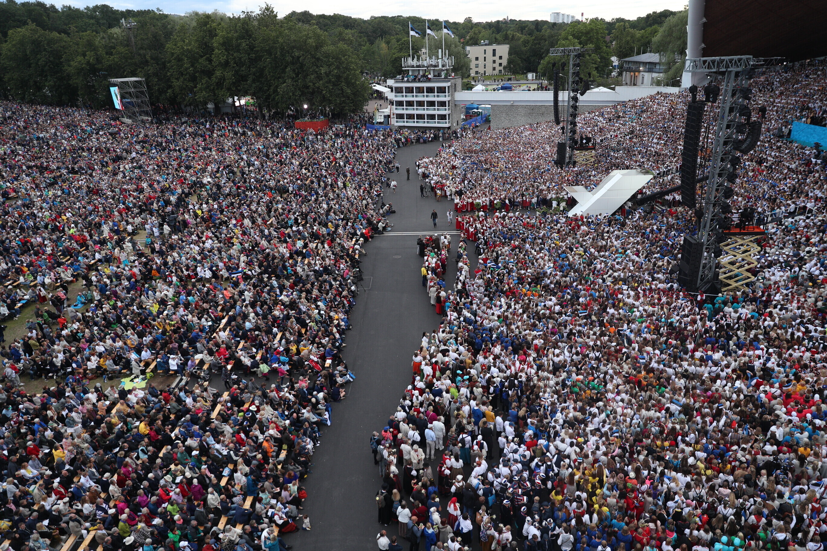 Во время последнего выступления общего хора, объединившего более 22 000 певцов, был потушен огонь XXVII Праздника песни "Моя любовь". Всего на воскресном концерте юбилейного праздника вместе с певцами и музыкантами было свыше 100 000 человек.