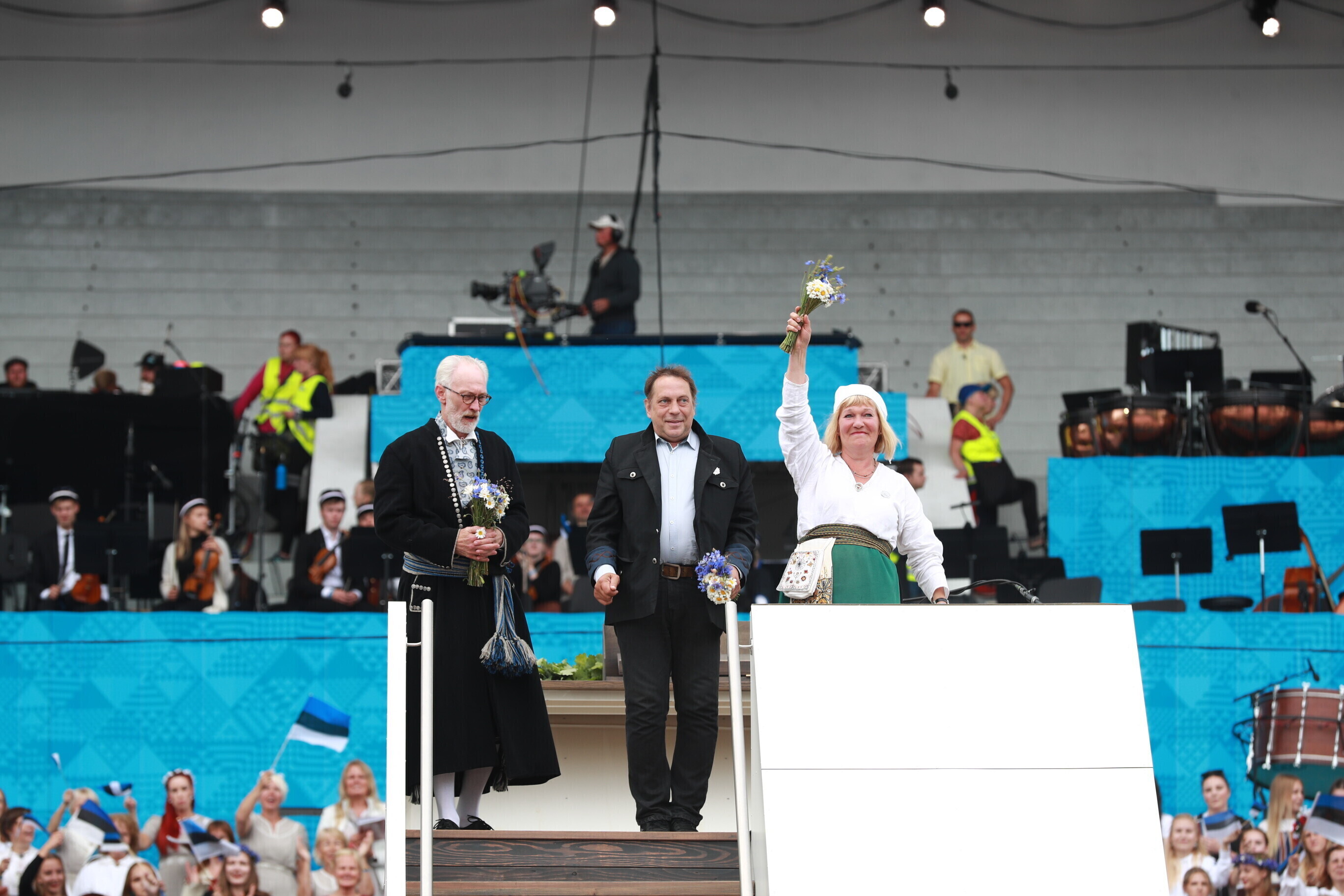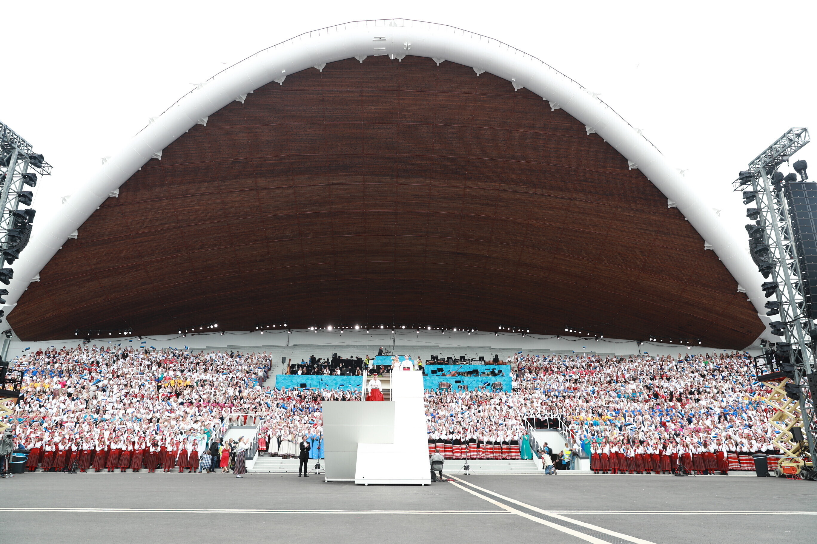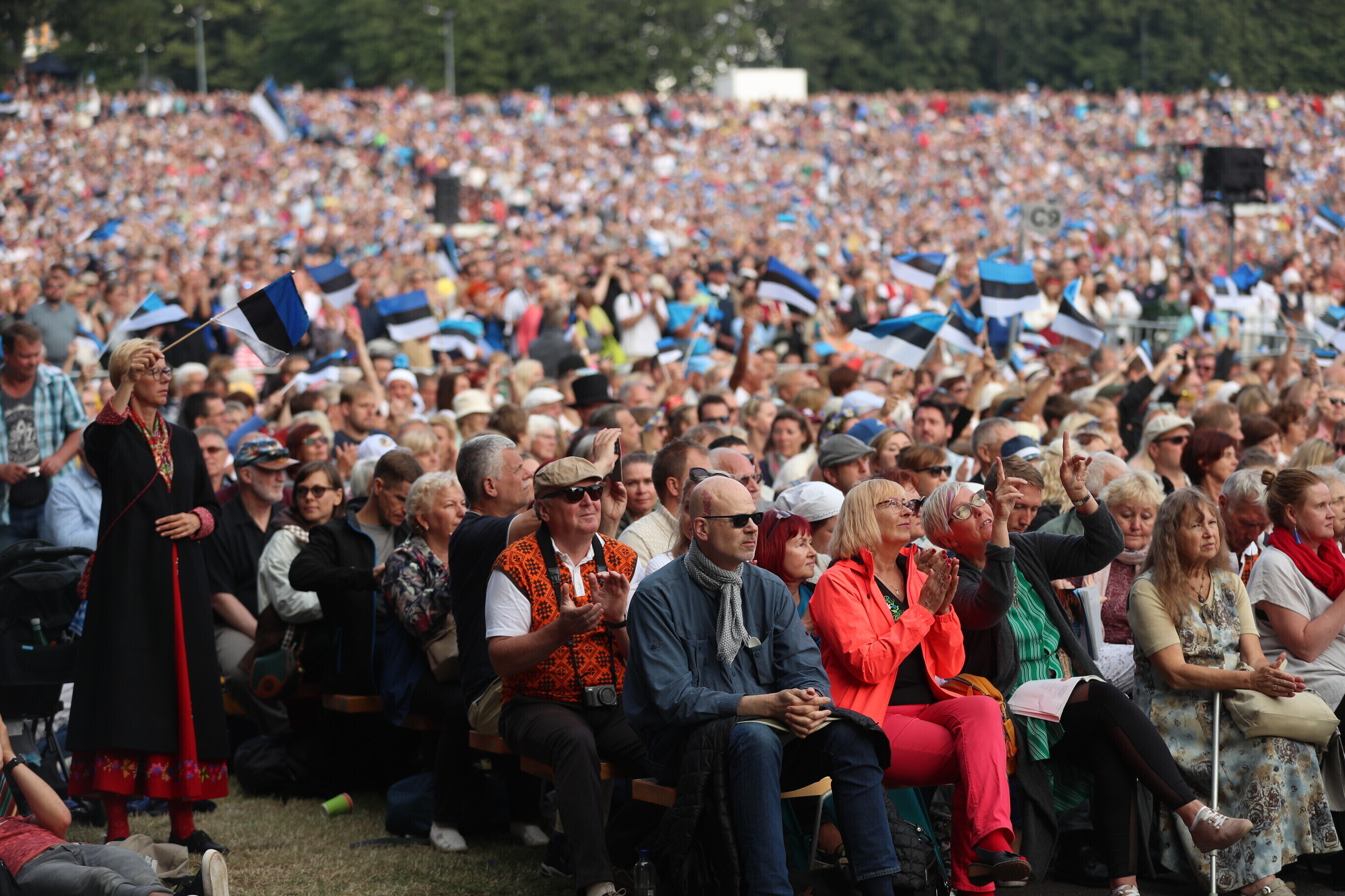 Во время последнего выступления общего хора, объединившего более 22 000 певцов, был потушен огонь XXVII Праздника песни "Моя любовь". Всего на воскресном концерте юбилейного праздника вместе с певцами и музыкантами было свыше 100 000 человек.