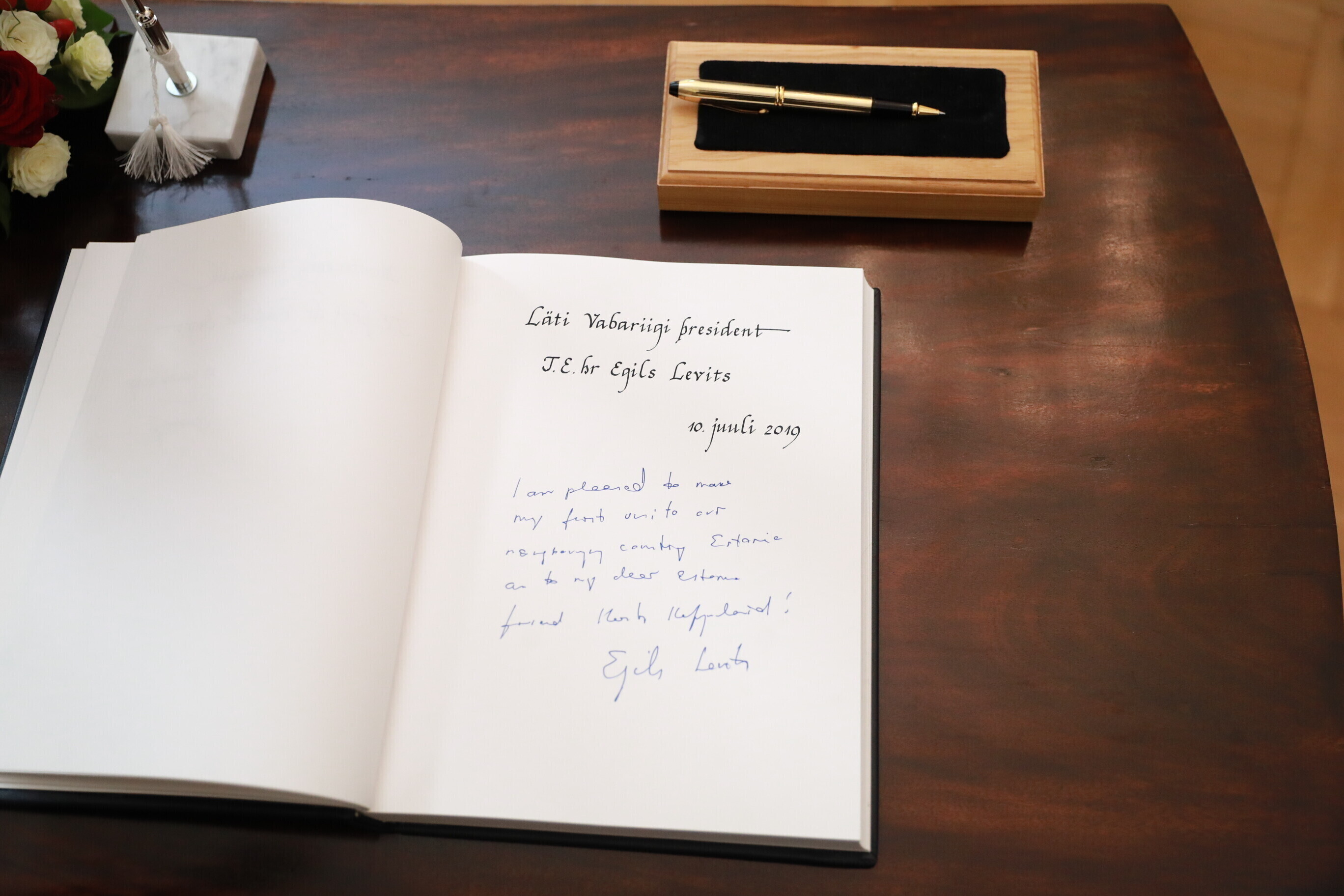 Программа визита началась со встречи Левитса с президентом Эстонии Керсти Кальюлайд в Кадриорге.
