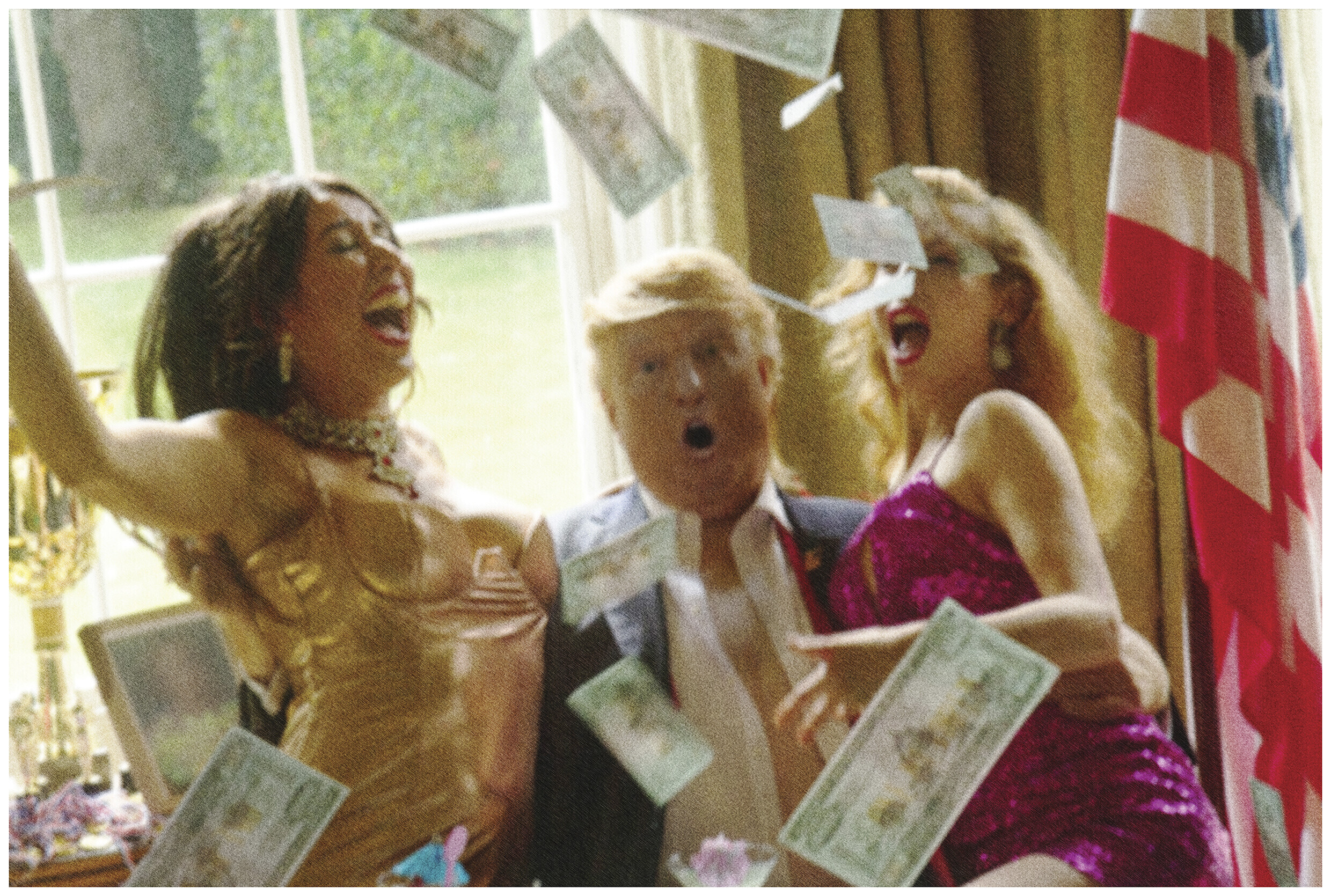 В выставку входят кадры со сценами интимных моментов Дональда Трампа с Мисс Мексика; королевы Елизаветы, которая делает селфи с семьей; Ангелы Меркель, на плечах которой только одна шуба, в объятиях Франсуа Олланда; Барака Обамы в курилке. Как современный фотохудожник Элисон Джексон стирает границу между реальностью и человеческой фантазией.