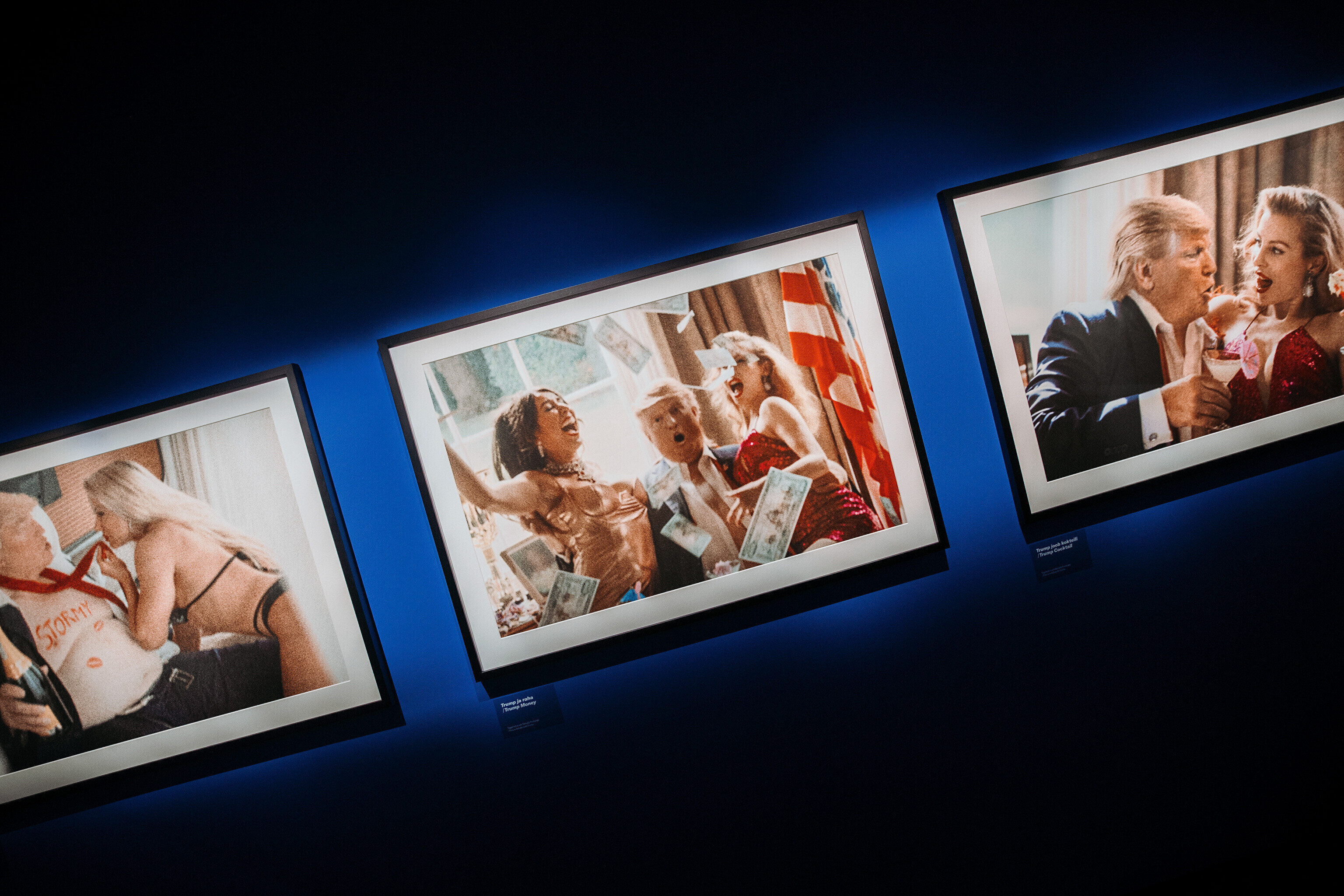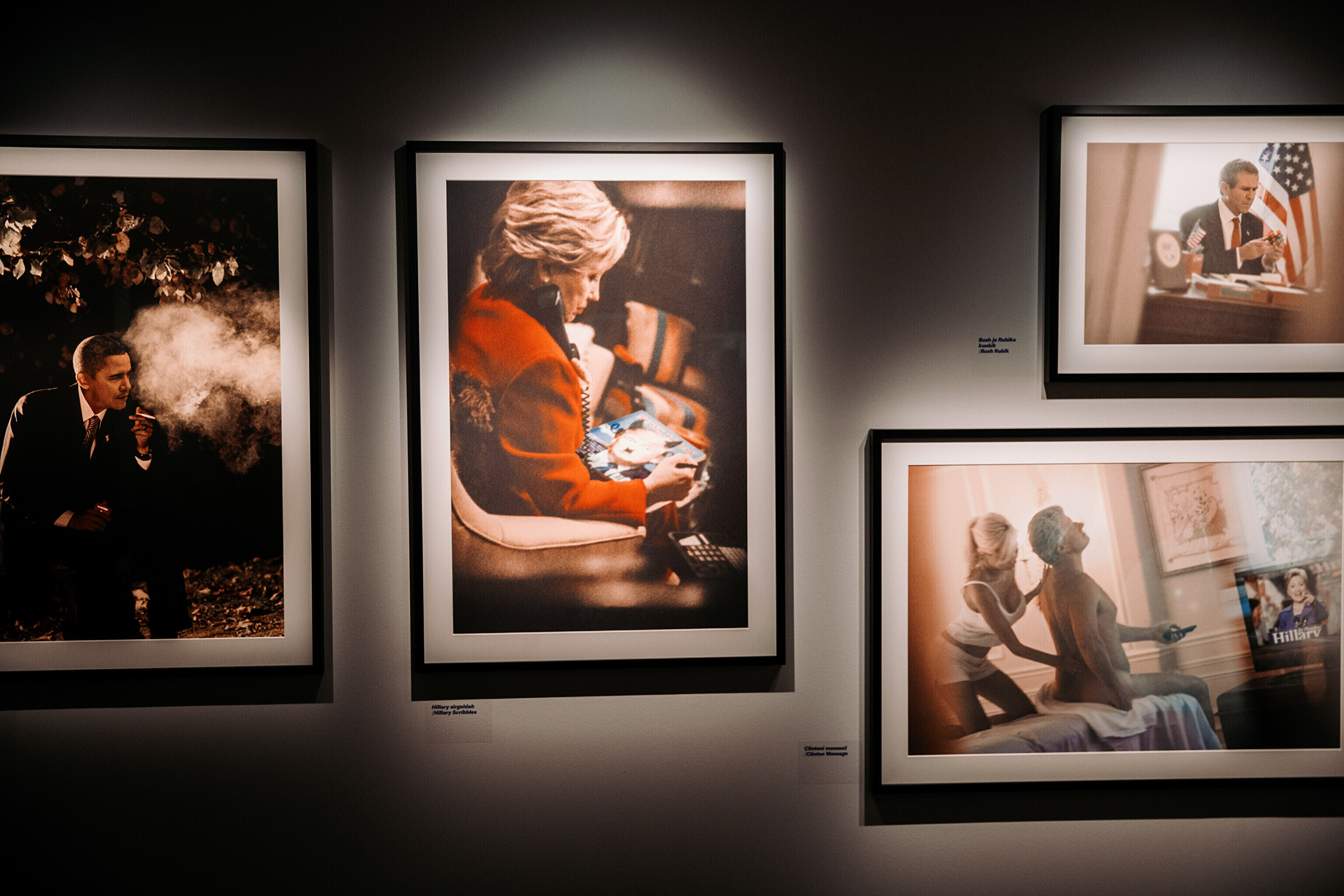 В выставку входят кадры со сценами интимных моментов Дональда Трампа с Мисс Мексика; королевы Елизаветы, которая делает селфи с семьей; Ангелы Меркель, на плечах которой только одна шуба, в объятиях Франсуа Олланда; Барака Обамы в курилке. Как современный фотохудожник Элисон Джексон стирает границу между реальностью и человеческой фантазией.