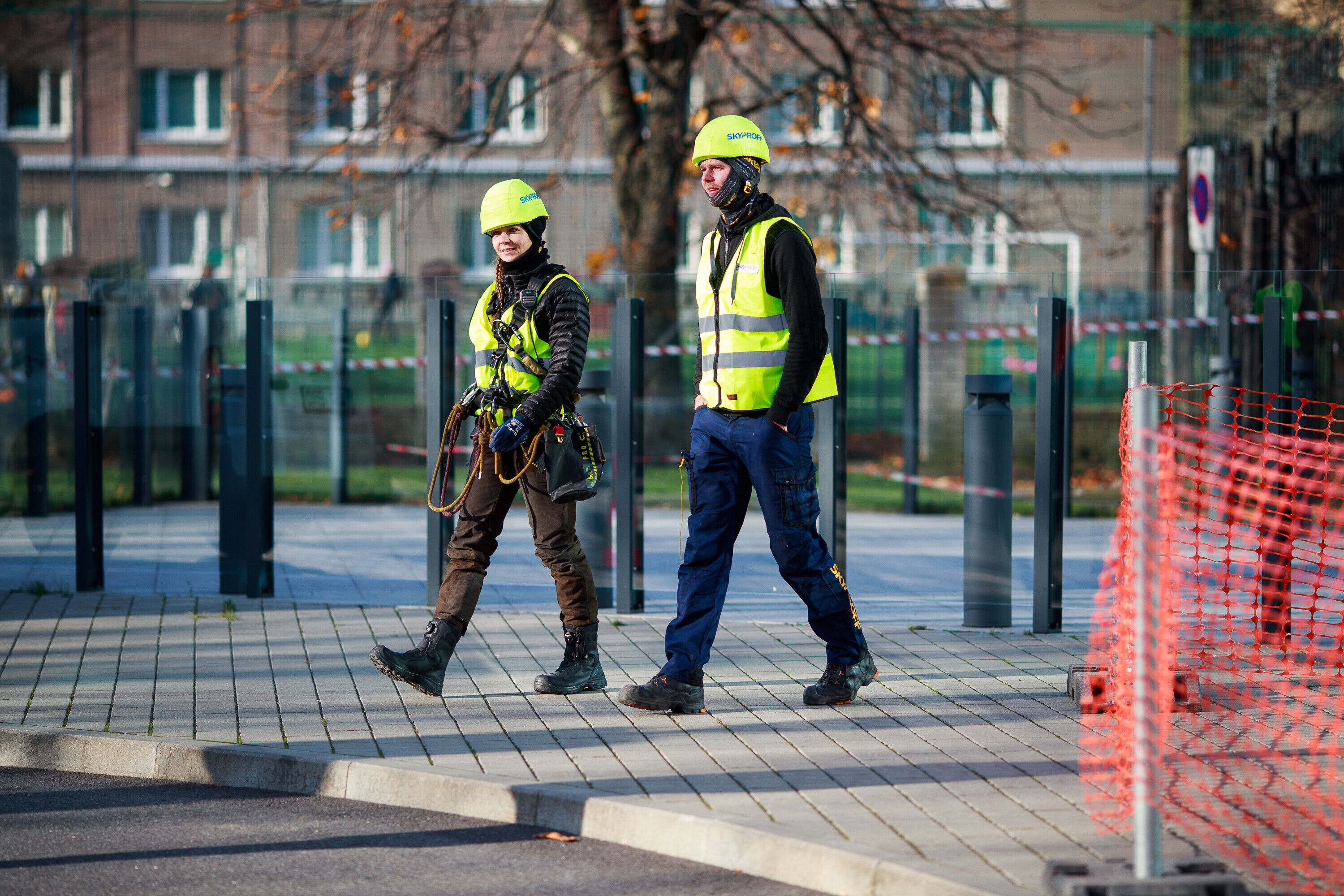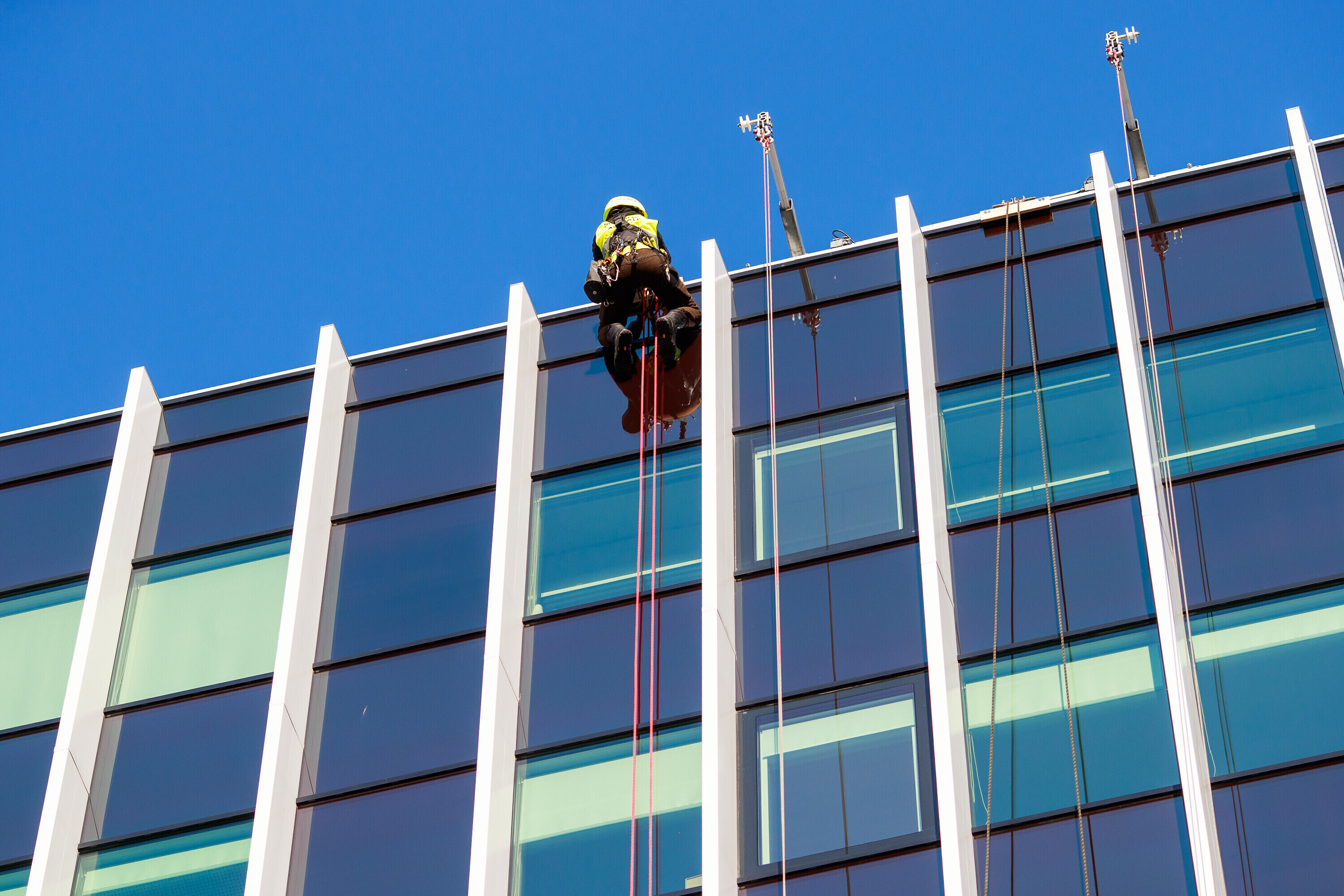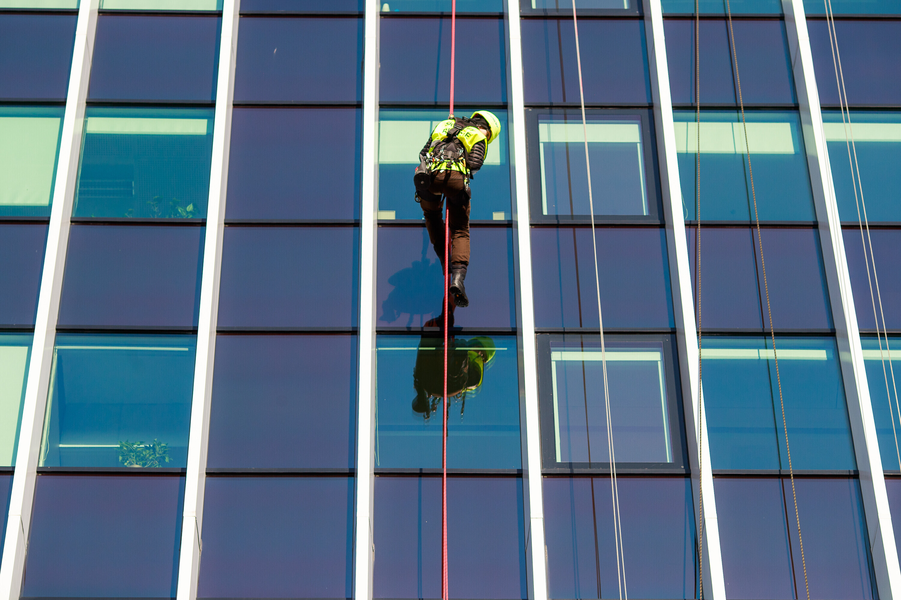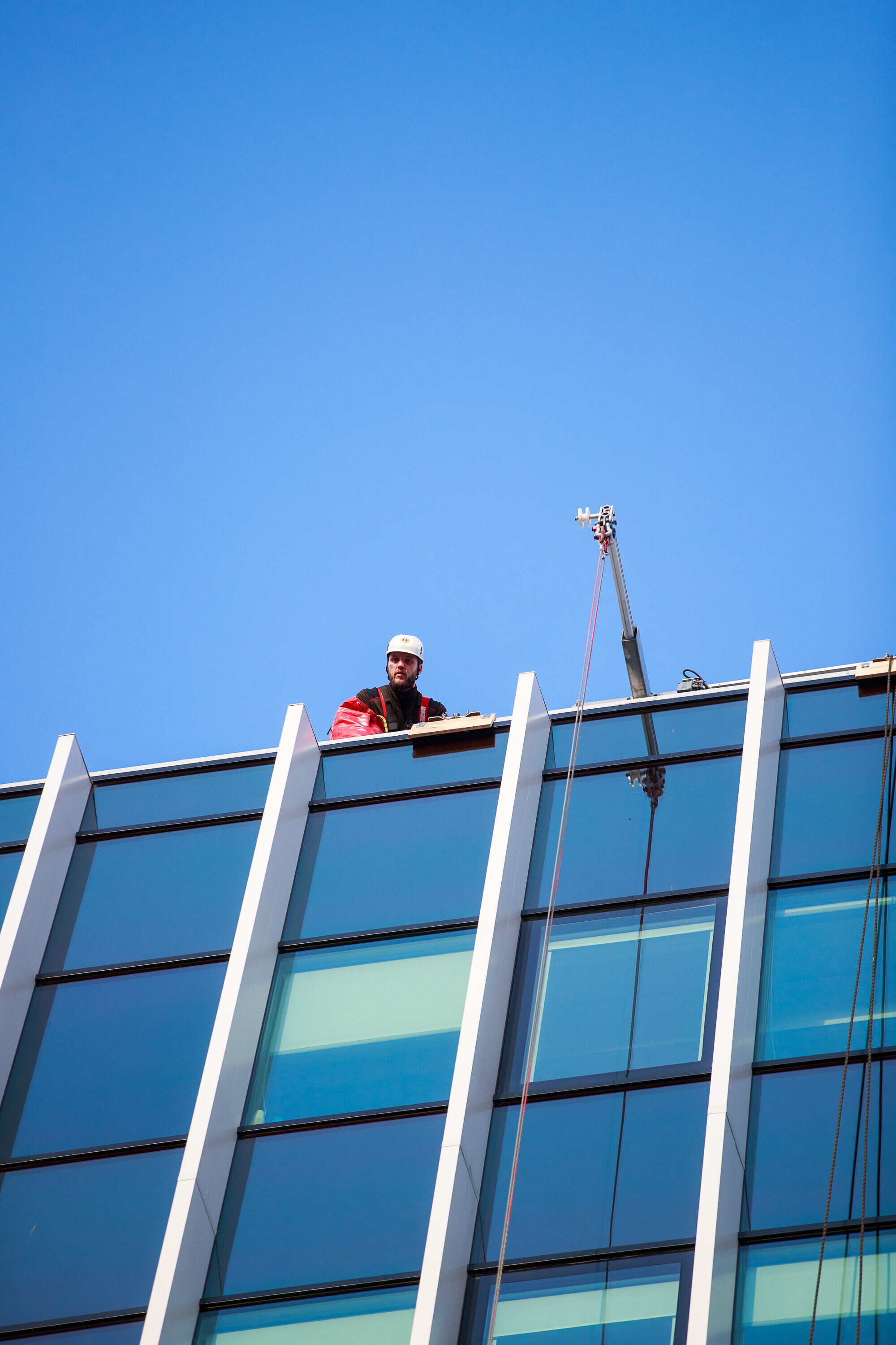В ходе учений спасатели взбирались и спускались по фасаду радиодома и отрабатывали навыки спасения на высоте на манекене, изображавшем нуждавшегося в помощи.