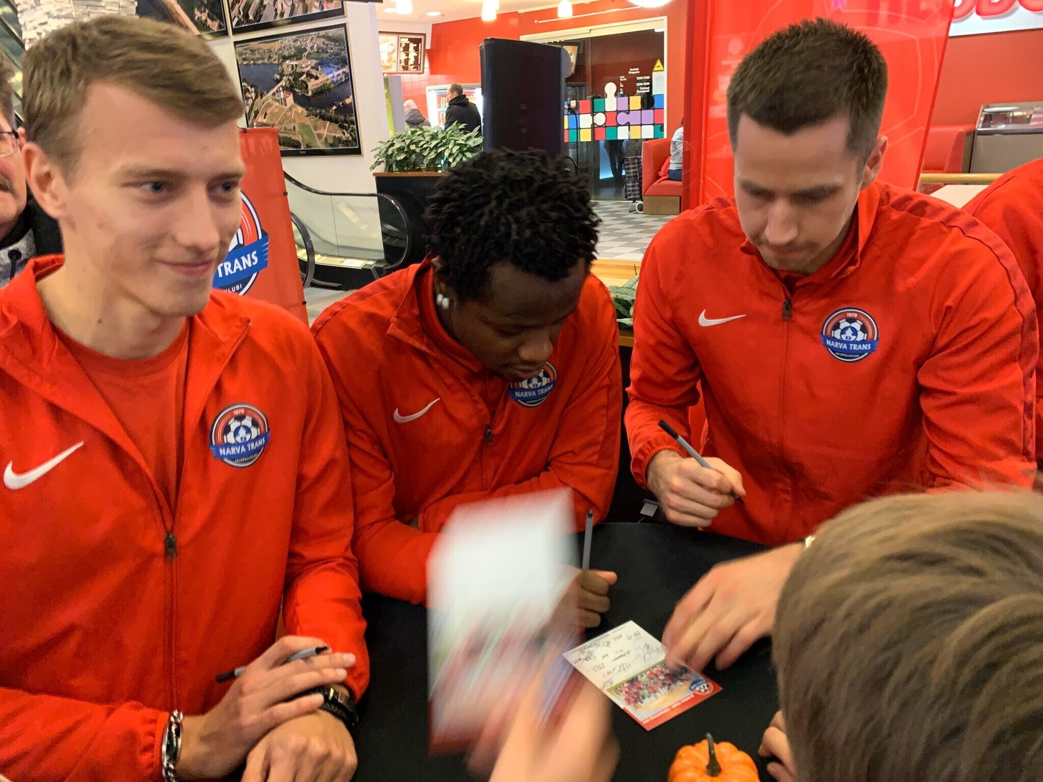 Хотя до завершения футбольного сезона эстонской Премиум-лиги осталось еще два тура, нарвский футбольный клуб провел посвященное завершению сезона мероприятие, встретившись в четверг с фанатами в торговом центре Fama.
