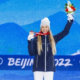 15.02.22 ОЛИМПИАДА-2022 ... Эстонская фристайлистка Келли Сильдару на торжественной церемонии получила бронзовую медаль за третье место на соревнованиях по слоупстайлу на Олимпийских играх в Пекине.